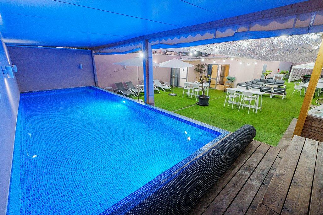 במרכז המתחם המרהיב תגלו את פנינת האירוח - בריכת שחייה מחוממת ומקורה המאפשרת הנאה מימית בכל ימות השנה, לצד ג'קוזי ספא מפנק שמזמין אתכם להתרגע ולהתחדש. המרחב החיצוני מציע חצר מטופחת להפליא עם מדשאות רחבות ידיים ופינות ישיבה אינטימיות, המאפשרות לאורחים ליהנות מהאווירה הקסומה. לאלו שאוהבים לארח ברמה גבוהה, המתחם גאה להציג מטבח חוץ מאובזר במלואו, הכולל עמדת מנגל מקצועית להכנת מטעמים שישאירו את האורחים מרוצים.