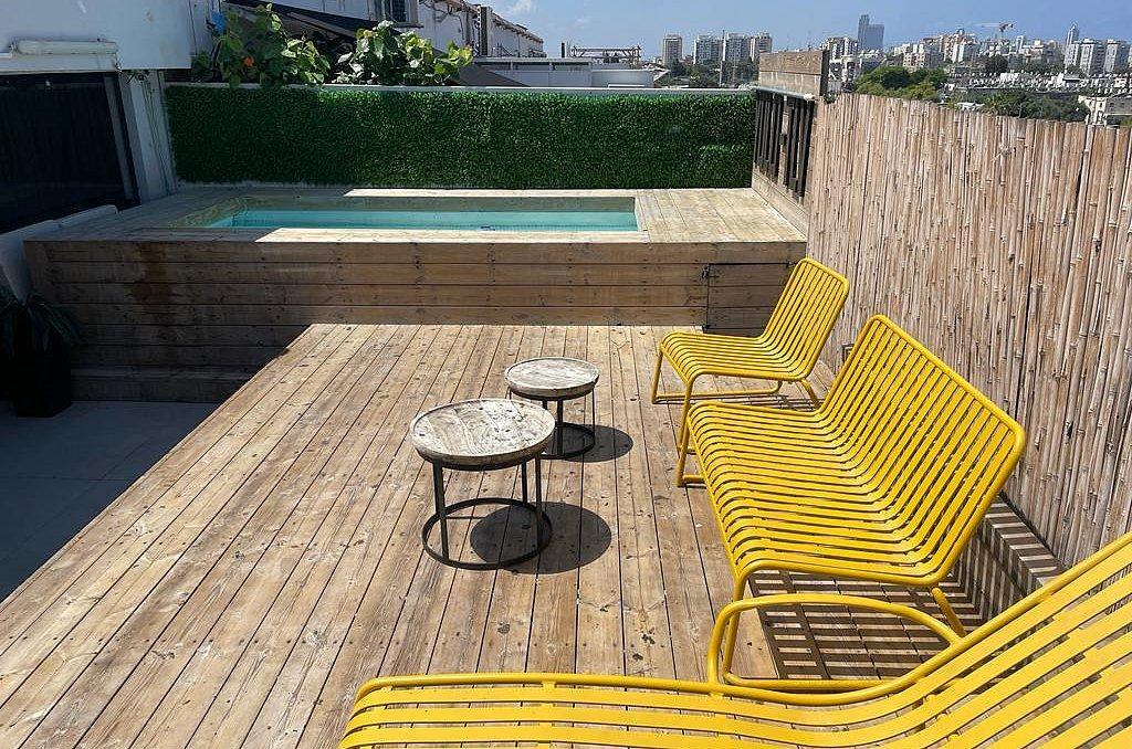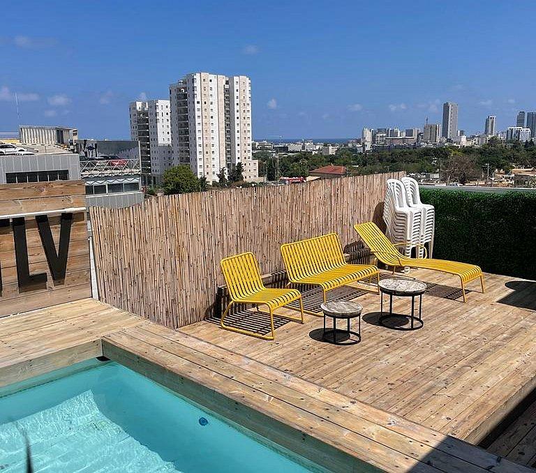 החלל הפנימי הנרחב כולל אזור מרכזי מרשים עם סלון אלגנטי ומזמין, פינות ישיבה נוחות לשיחות אינטימיות, מערכת הגברה מקצועית לסאונד איכותי, מערכת קריוקי משובחת להפגנת כישרונות ופינת אוכל מעוצבת לארוחות משותפות. המתחם החיצוני המרהיב מציע בריכת שחייה מחוממת עם נוף פנורמי עירוני מרשים של תל אביב ופינות ישיבה מפנקות ליצירת אווירה ייחודית תחת כיפת השמיים.