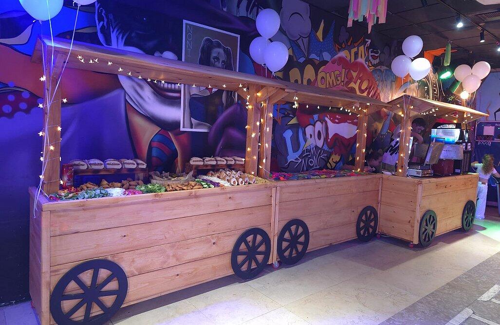 חוויית המסיבה שלכם מתעצמת עם מכונת עשן המייצרת אפקטים אטמוספריים קסומים, מערכת קריוקי איכותית שמזמינה את האורחים לקחת חלק פעיל באירוע, ובר אלכוהול מעוצב בסגנון אורבני עם כסאות בר נוחים המזמינים להתרווח וליהנות. להשלמת החוויה המושלמת, אנו מציעים שירותים נלווים שישדרגו את האירוע שלכם - החל מעיצובי בלונים צבעוניים ומרשימים שיוסיפו נופך חגיגי, דרך אפשרויות קייטרינג איכותיות המותאמות לכל טעם, ועד לשירותי צילום מקצועיים ומגנטים שיאפשרו לכם ולאורחיכם לשמר את הרגעים הקסומים של האירוע לשנים רבות.