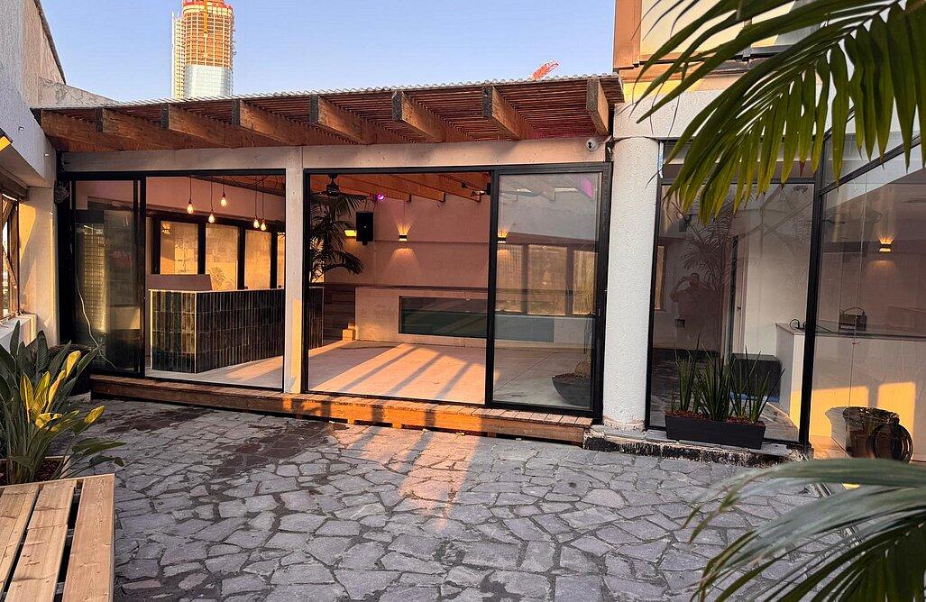פטיו תל אביב - מקום החלומות לאירוע המושלם שלכם עם נוף עוצר נשימה של העיר התוססת. מתחם האירועים שלנו מציע חלל מעוצב בסגנון ייחודי שבו כל פרט תוכנן בקפידה להעניק לאירוע שלכם את הנגיעה המיוחדת שתהפוך אותו לבלתי נשכח. על שטח של 200 מ"ר, המתחם ערוך לאירוח מרשים של עד 70 אורחים באווירה אינטימית ויוקרתית. בפטיו תל אביב תיהנו מבריכה מחוממת מפנקת, מערכות תאורה והגברה חדישות, ומטבח מצויד היטב עם כל הציוד החשמלי הנדרש לאירוע מוצלח. להשלמת החוויה, אנו מציעים אפשרויות שדרוג מגוונות כמו חבילות אלכוהול מותאמות, אפשרויות קולינריות עשירות, שירותי דיג'יי, עיצוב מותאם אישית ועוד מגוון רחב של אטרקציות. לכלות המיוחדות שלנו, הכנו חדר התארגנות מפנק הכולל שולחן איפור, מראת גוף, תאורה אידיאלית, פינות ישיבה נוחות וכל מה שנדרש להתחלה מושלמת של היום המיוחד.