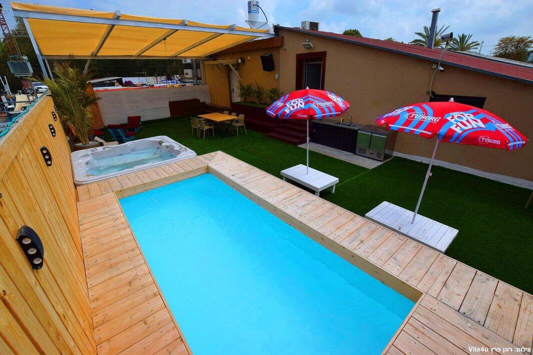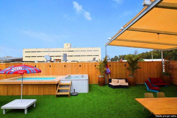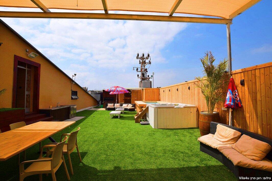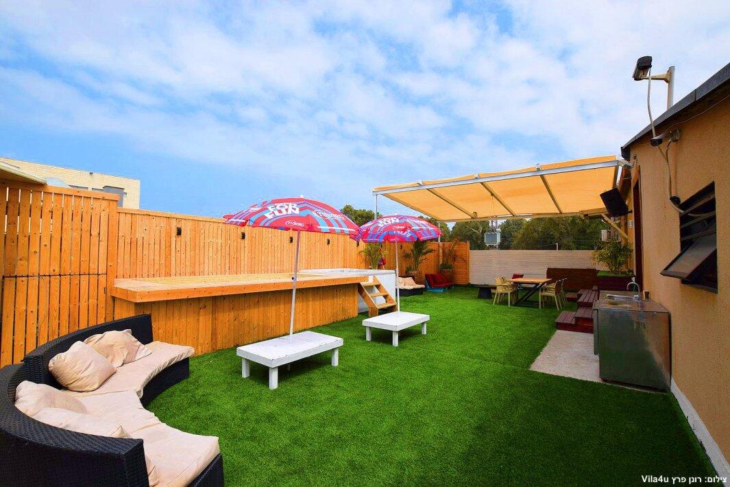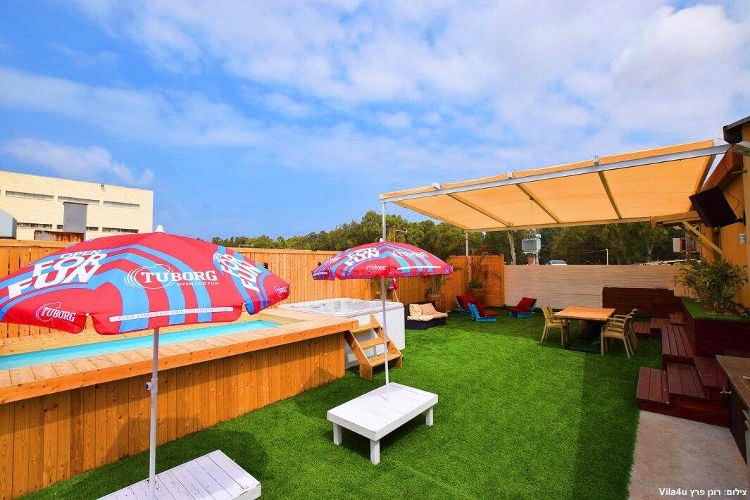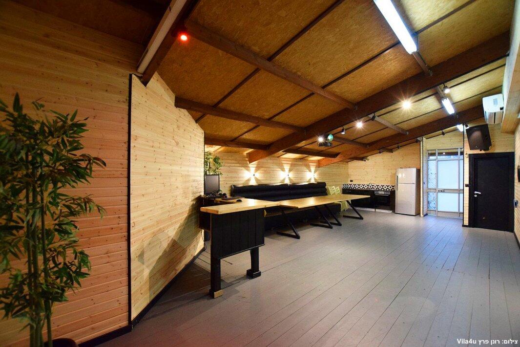פנטהאוז על הגג בנתניה - היהלום הנוצץ של חוויות אירוח יוקרתיות. דמיינו אירוע אינטימי ומפנק במיוחד, במתחם מעוצב להפליא שמספק את כל צרכי האירוח שלכם ברמה הגבוהה ביותר. בין אם אתם מתכננים מסיבה תוססת, אירוע משפחתי מרגש או פשוט מחפשים מקום מיוחד לחופשה, הפנטהאוז היוקרתי שלנו יעניק לכם זיכרונות בלתי נשכחים. המתחם המרווח מציע ארבעה חדרי שינה מפנקים לאירוח נוח, לצד מרחב חיצוני מרהיב הכולל מדשאות ירוקות, בריכת שחייה מרעננת וג'קוזי ספא מפנק. להעצמת החוויה, המתחם מצויד במטבח חיצוני מאובזר היטב, מערכות הגברה וקריוקי מתקדמות, בר ישיבה מעוצב, מקרן איכותי למצגות או סרטים ומטבחון פנימי לנוחות מירבית. המתחם ערוך לאירוח מושלם של עד 50 אורחים, והוא מהווה את הבחירה האידיאלית למי שמחפש לשלב אירוע אינטימי ומרשים עם אפשרות ללינה נוחה.