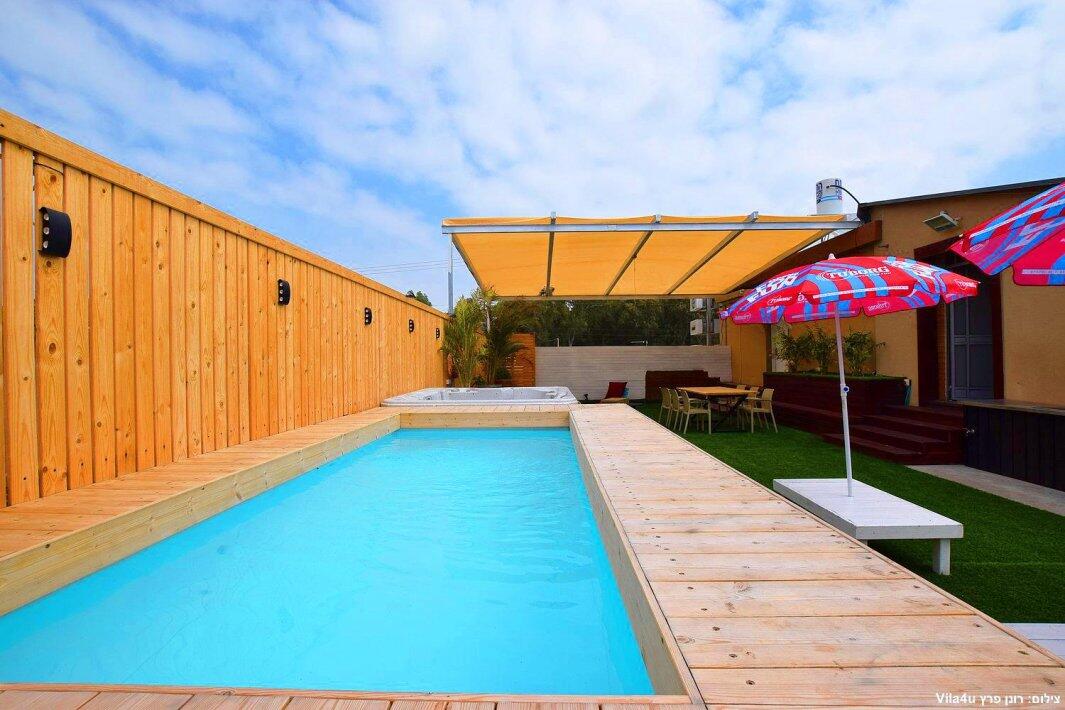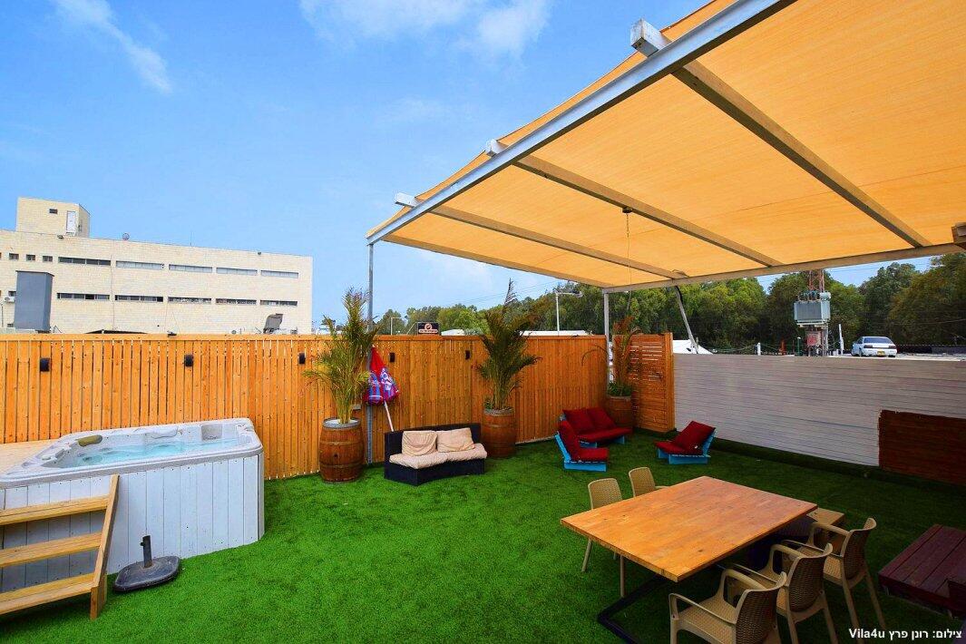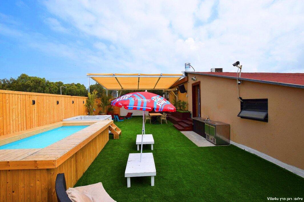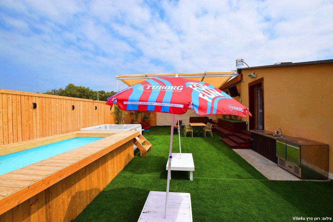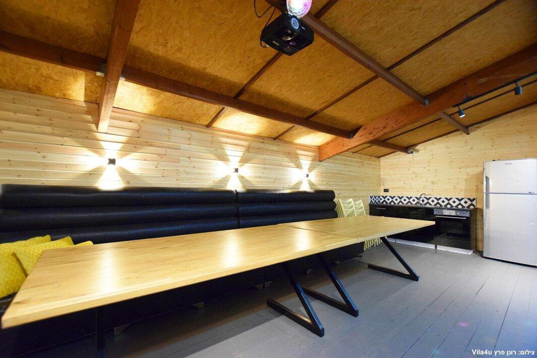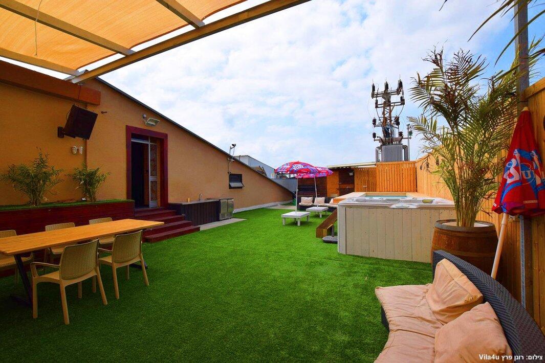 פנטהאוז על הגג בנתניה - היהלום הנוצץ של חוויות אירוח יוקרתיות. דמיינו אירוע אינטימי ומפנק במיוחד, במתחם מעוצב להפליא שמספק את כל צרכי האירוח שלכם ברמה הגבוהה ביותר. בין אם אתם מתכננים מסיבה תוססת, אירוע משפחתי מרגש או פשוט מחפשים מקום מיוחד לחופשה, הפנטהאוז היוקרתי שלנו יעניק לכם זיכרונות בלתי נשכחים. המתחם המרווח מציע ארבעה חדרי שינה מפנקים לאירוח נוח, לצד מרחב חיצוני מרהיב הכולל מדשאות ירוקות, בריכת שחייה מרעננת וג'קוזי ספא מפנק. להעצמת החוויה, המתחם מצויד במטבח חיצוני מאובזר היטב, מערכות הגברה וקריוקי מתקדמות, בר ישיבה מעוצב, מקרן איכותי למצגות או סרטים ומטבחון פנימי לנוחות מירבית. המתחם ערוך לאירוח מושלם של עד 50 אורחים, והוא מהווה את הבחירה האידיאלית למי שמחפש לשלב אירוע אינטימי ומרשים עם אפשרות ללינה נוחה.