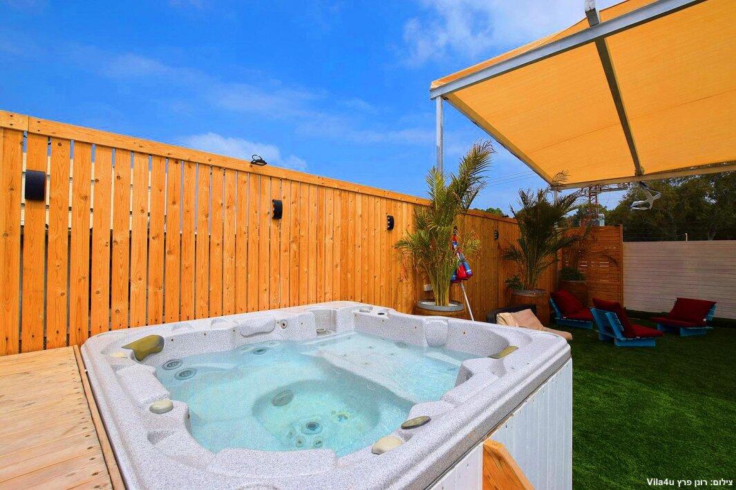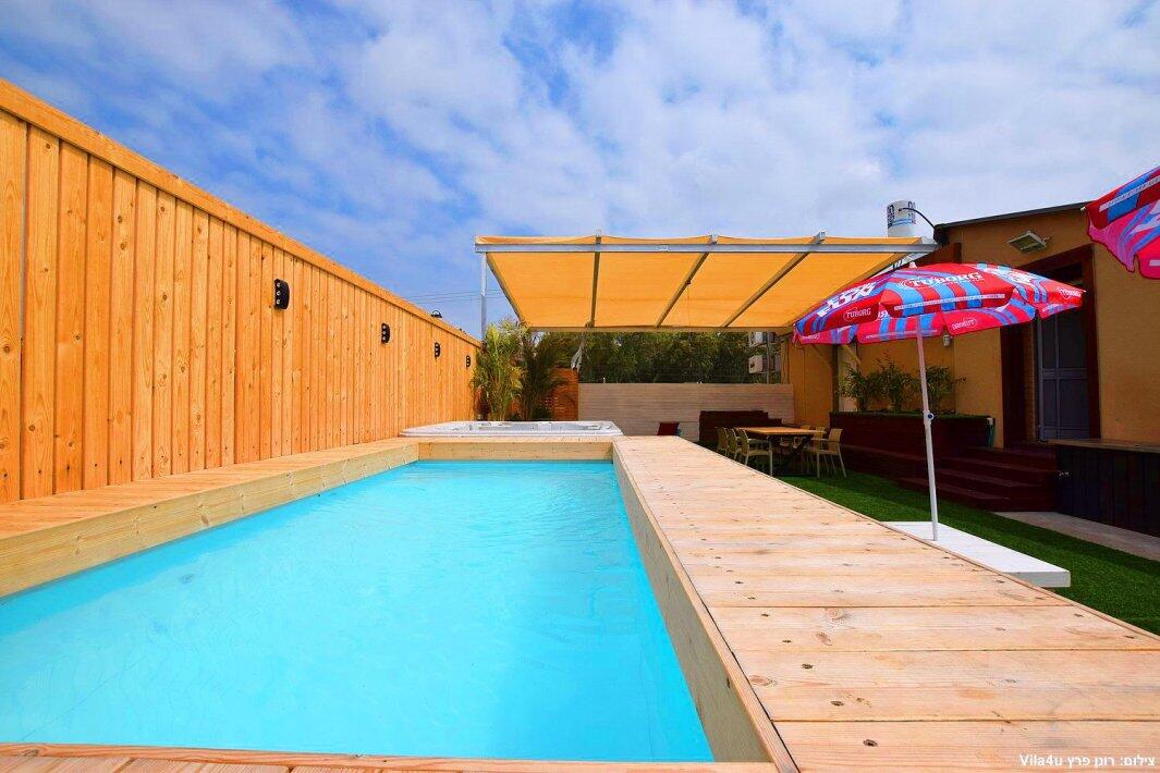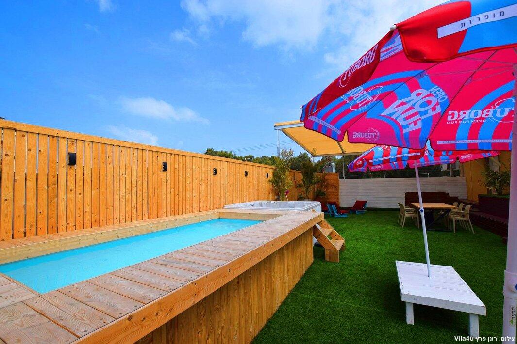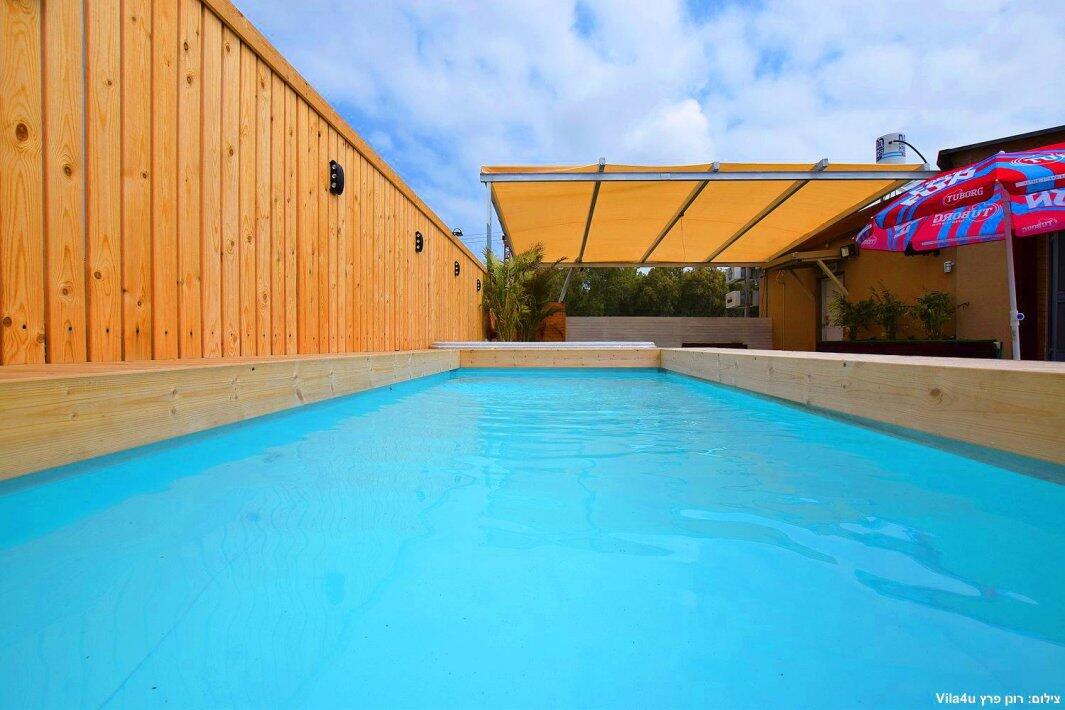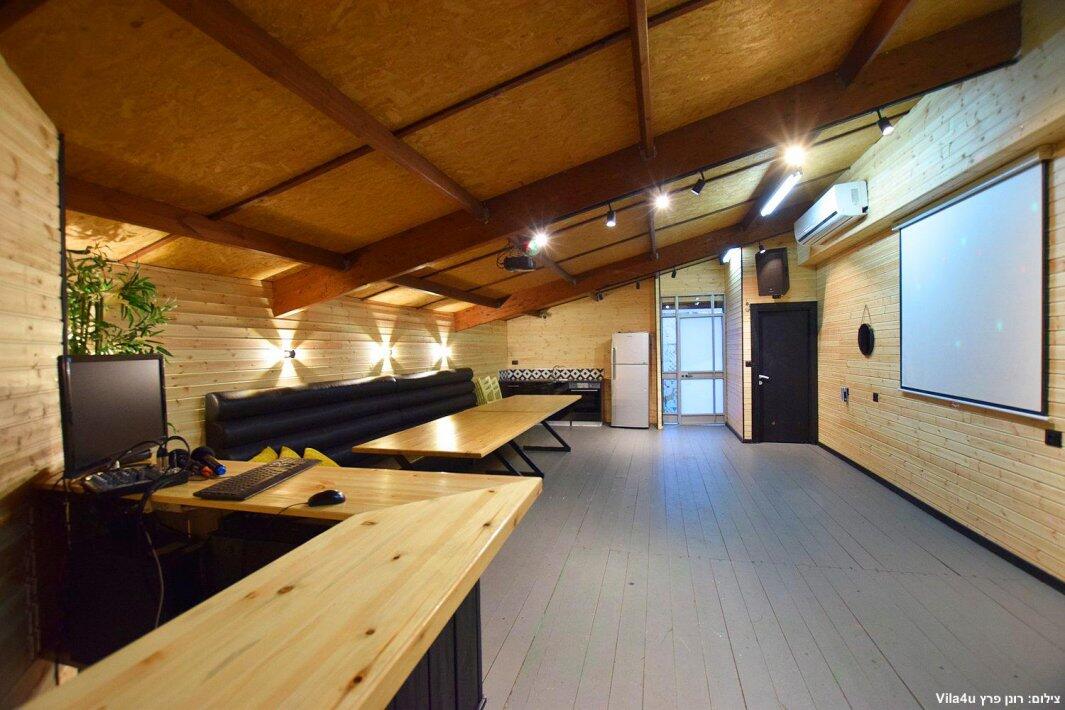פנטהאוז על הגג בנתניה - היהלום הנוצץ של חוויות אירוח יוקרתיות. דמיינו אירוע אינטימי ומפנק במיוחד, במתחם מעוצב להפליא שמספק את כל צרכי האירוח שלכם ברמה הגבוהה ביותר. בין אם אתם מתכננים מסיבה תוססת, אירוע משפחתי מרגש או פשוט מחפשים מקום מיוחד לחופשה, הפנטהאוז היוקרתי שלנו יעניק לכם זיכרונות בלתי נשכחים. המתחם המרווח מציע ארבעה חדרי שינה מפנקים לאירוח נוח, לצד מרחב חיצוני מרהיב הכולל מדשאות ירוקות, בריכת שחייה מרעננת וג'קוזי ספא מפנק. להעצמת החוויה, המתחם מצויד במטבח חיצוני מאובזר היטב, מערכות הגברה וקריוקי מתקדמות, בר ישיבה מעוצב, מקרן איכותי למצגות או סרטים ומטבחון פנימי לנוחות מירבית. המתחם ערוך לאירוח מושלם של עד 50 אורחים, והוא מהווה את הבחירה האידיאלית למי שמחפש לשלב אירוע אינטימי ומרשים עם אפשרות ללינה נוחה.