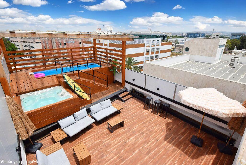 גלו את סאנרייז על גג העולם - החוויה האולטימטיבית למסיבות ונופש בכפר סבא. מתחם יוקרתי וייחודי זה מציע אפשרות לחגוג ללא הגבלת רעש, באווירה קסומה שנדמה כי נמצאת מעל לכל. המתחם המפנק כולל בריכת שחייה מרעננת וג'קוזי ספא מפנק, המאפשרים רגעי הנאה מושלמים. מערכת ההגברה האיכותית תדאג למוזיקה שתלווה את האירוע, בעוד שולחן הסנוקר המקצועי יספק בידור משובח לאורחים. לחובבי האוכל הטוב, פינת המנגל מזמינה להכין ארוחות טעימות, ופינות הישיבה הנוחות מפוזרות ברחבי המתחם לנוחות מרבית.