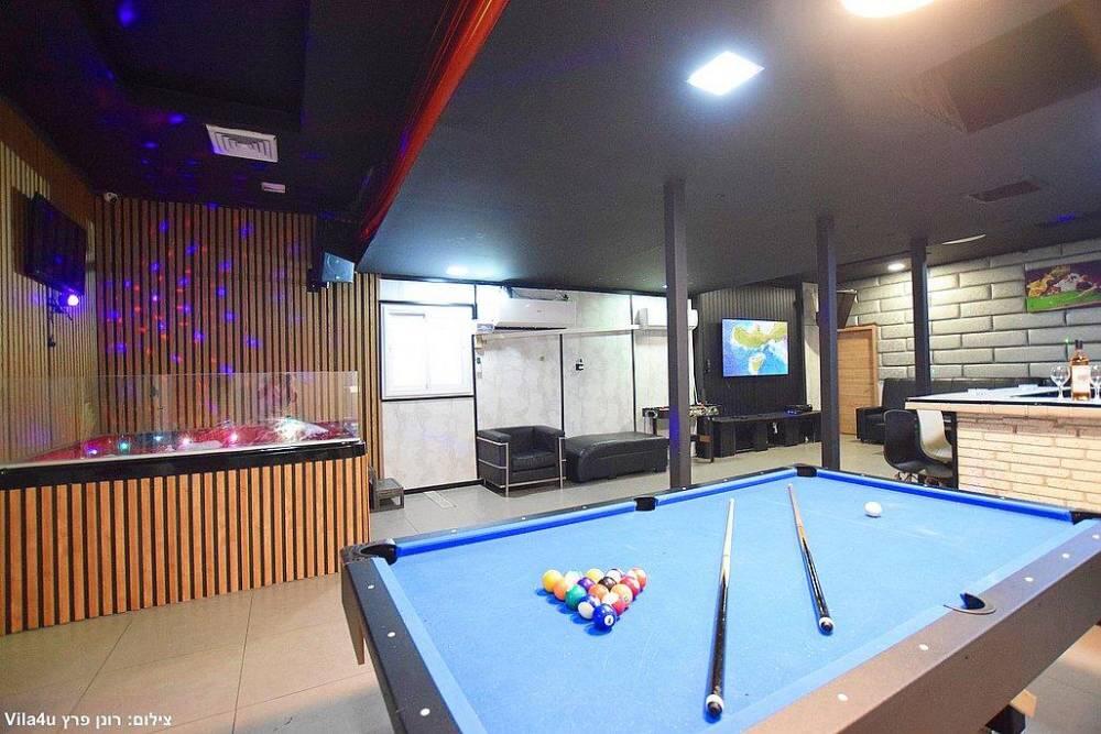 המתחם מתפרס על 120 מ"ר ומצויד במערכת בידור מלאה: קריוקי, סנוקר מקצועי, מסך 70 אינץ' ומערכות סאונד ותאורה חדישות - בנוסף, מחכה לכם ג'קוזי ספא ענק, בר ישיבה מזמין, מטבחון מאובזר, וחדר שינה זוגי המאפשר לינה נוחה של עד 13 אורחים.