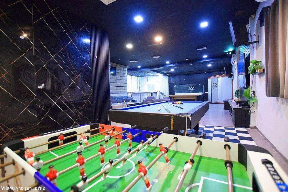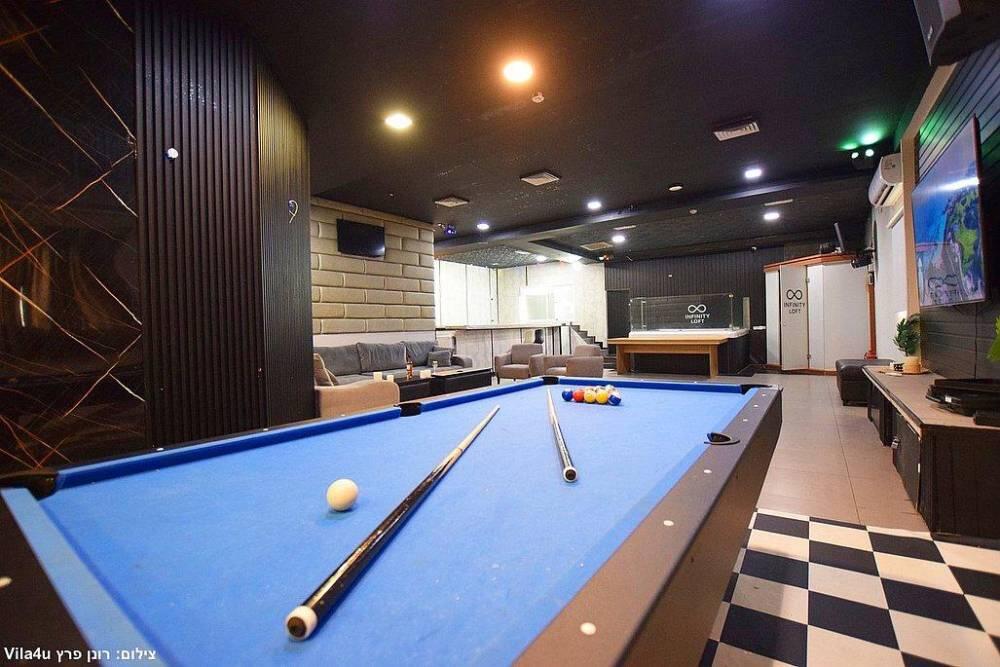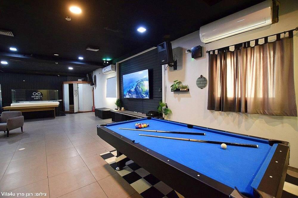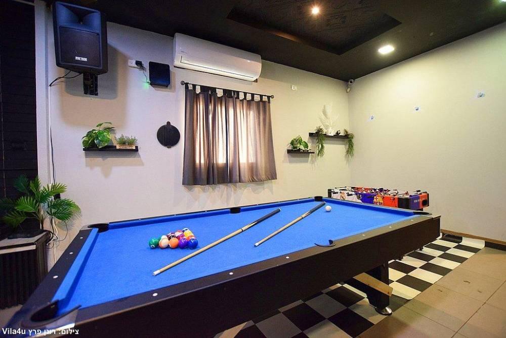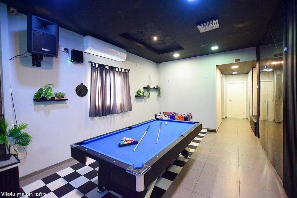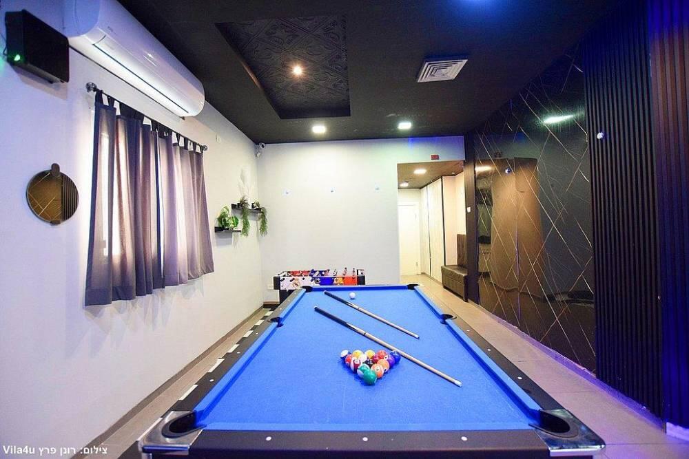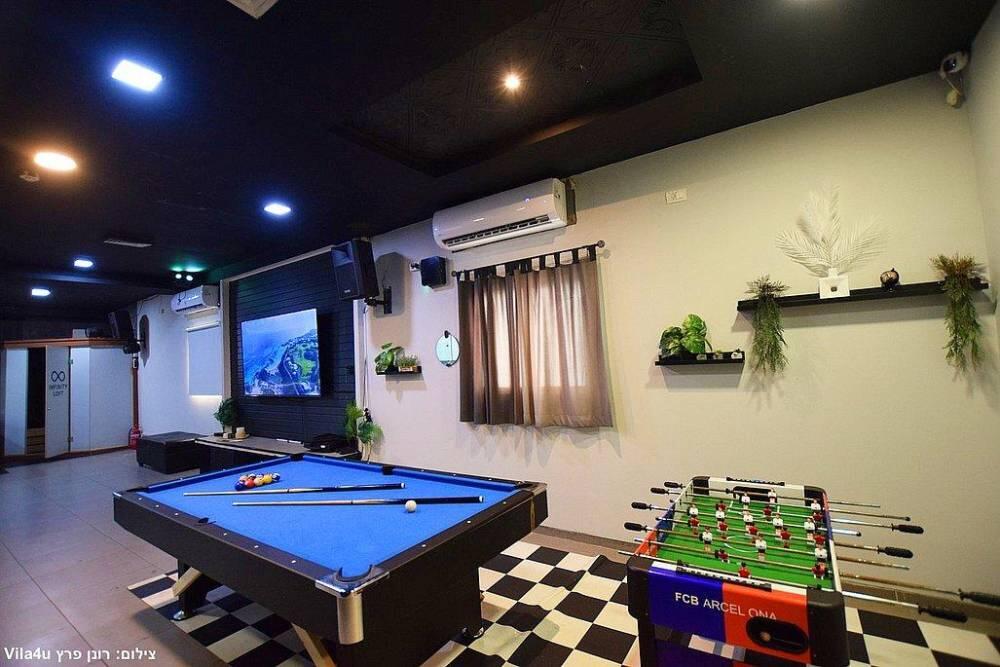 המתחם כולל מערכות הגברה ותאורה מהמתקדמות ביותר, מסך צפייה, בריכת שחייה בנויה ומחוממת, ג'קוזי ספא מפנק, שולחן סנוקר מקצועי משיש, מערכות ישיבה נוחות ועוד.