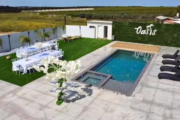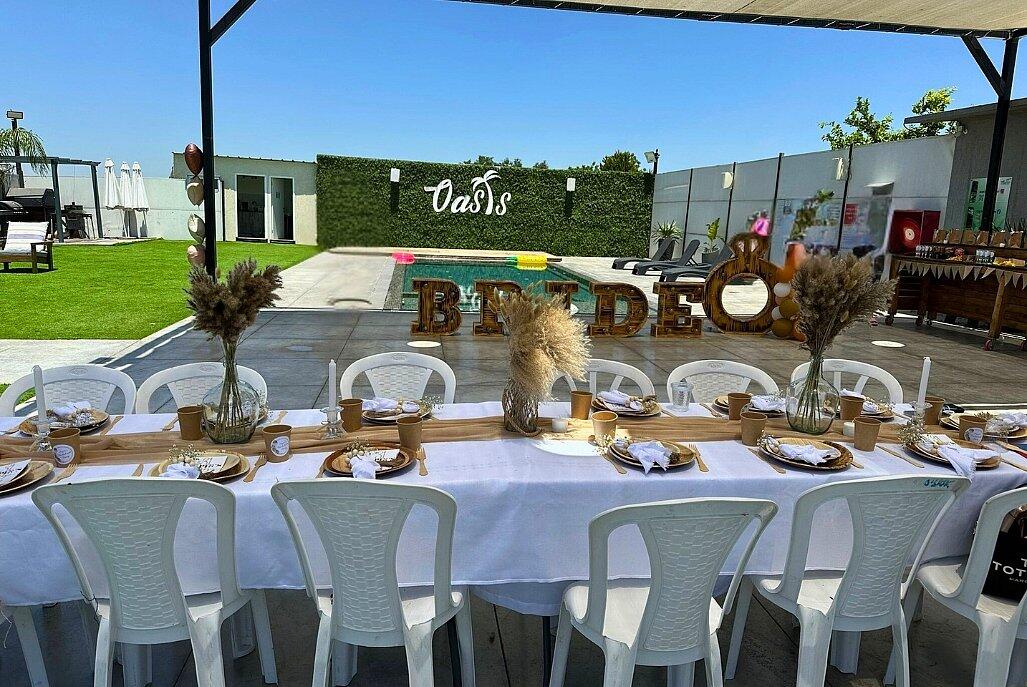 חגיגה מושלמת מחכה לכם באואזיס - המתחם היוקרתי שיהפוך כל אירוע שלכם לבלתי נשכח! בין אם אתם מתכננים חתונה אינטימית, מסיבת רווקות שתיזכר לנצח או כל התכנסות מיוחדת אחרת, המרחב המפואר שלנו בשטח של 800 מ"ר מציע את כל האלמנטים המושלמים. תתפנקו בבריכה מרעננת, התרווחו בפינות השיזוף המפנקות, והכינו מטעמים משובחים בפינות המנגל המאובזרות - הכל במקום אחד לחוויה שלמה.