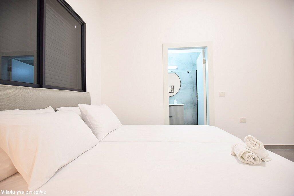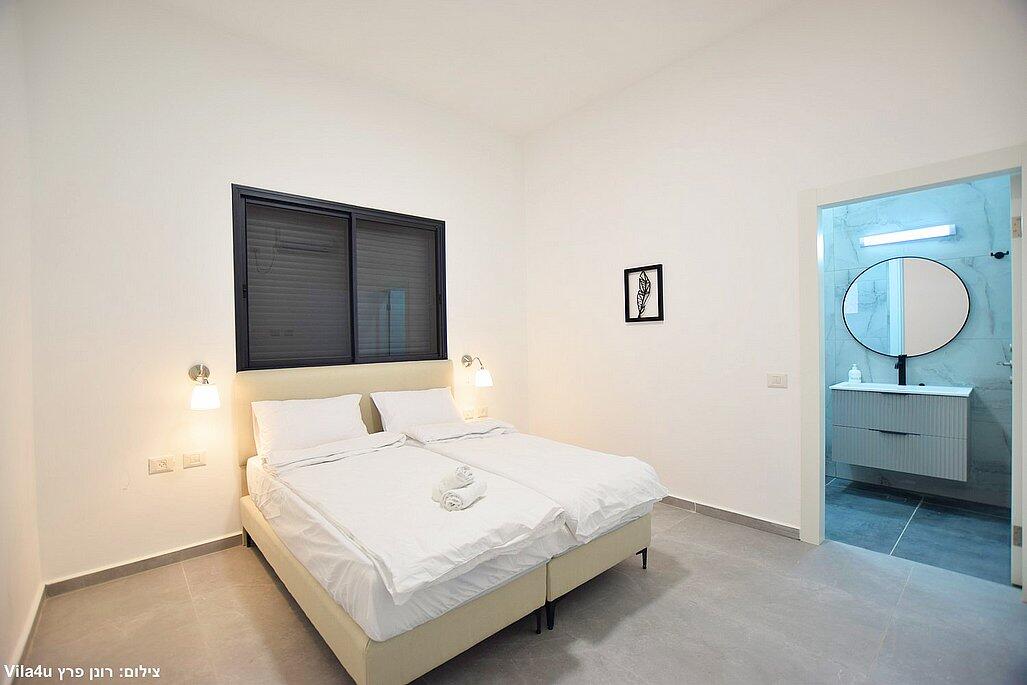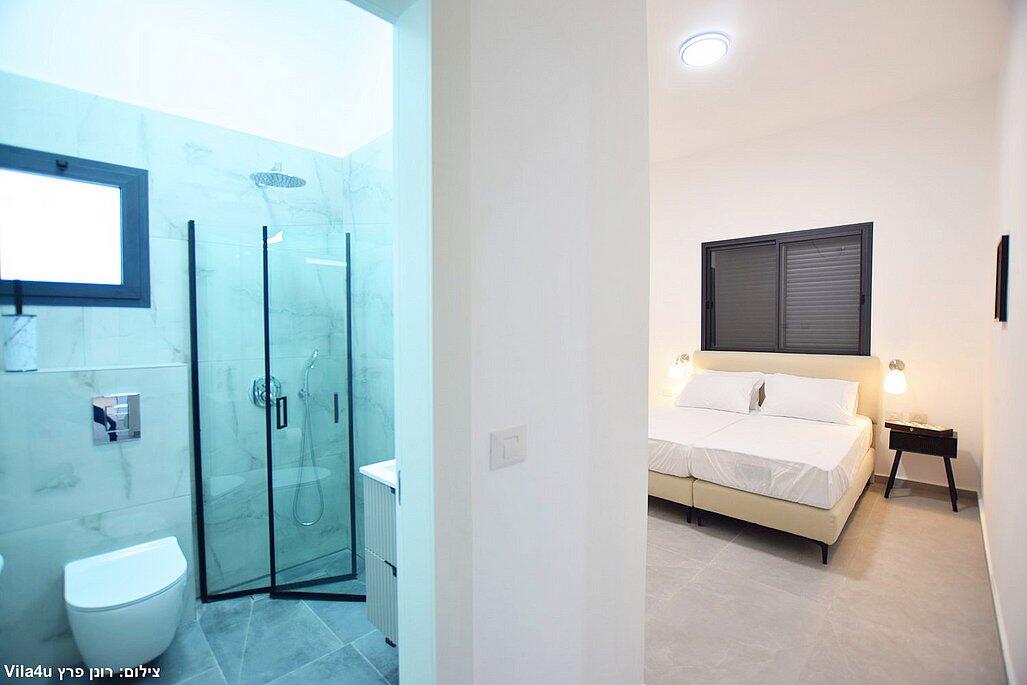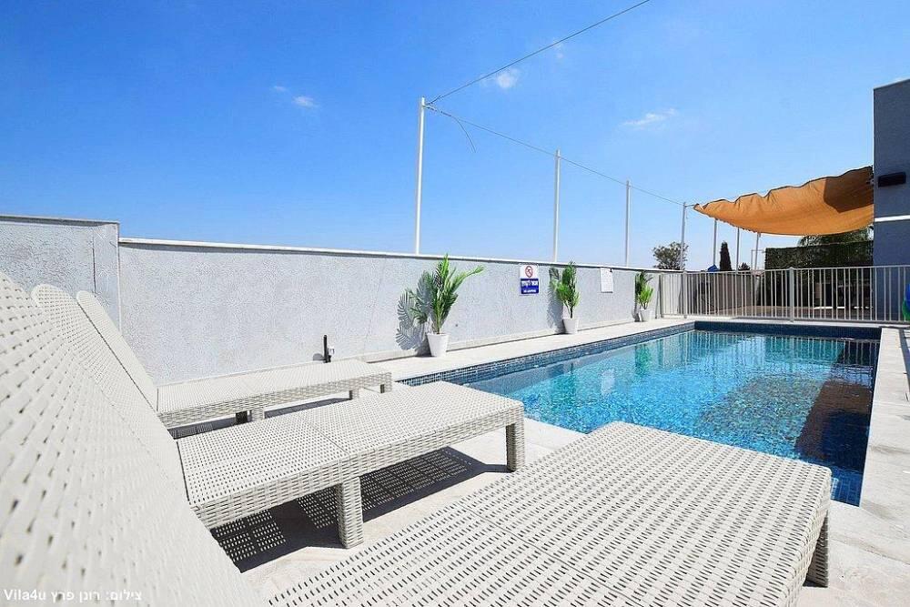 מתחם בוטיק איכותי במרכז הארץ עם 5 חדרי שינה מעוצבים, מטבח מאובזר ובריכה פרטית האחוזה מושלמת לאירוח משפחות, קבוצות חברים ושבתות חתן עד 20 אורחים ללינה 4 חדרי רחצה פרטיים, נוף קסום, שקט, פרטיות ותחושת בית – רק הרבה יותר מפנק לציבור הדתי: מיטות יהודיות, פלטת שבת, מיחם, ובית כנסת צמוד, במקום תיהנו משירות אישי, ניקיון מוקפד ותחושת שלווה בכל פינה - החצר כוללת בריכה מחוממת, פינות ישיבה, עמדת BBQ ופינת אוכל חיצונית נמצאת במרחק קצר מירושלים ותל אביב, במושב תירוש. החופשה הבאה שלכם מתחילה כאן – שילוב מושלם של נופש, טבע ונוחות
