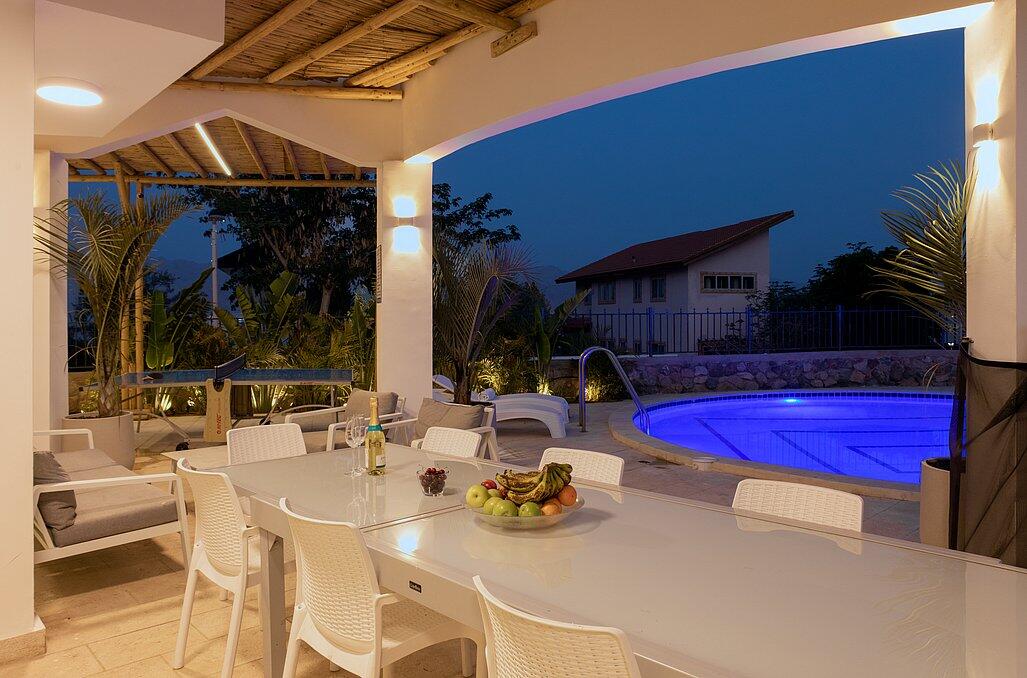 קריוקי. אין להשמיע מוזיקה או לצעוק כלל בחצר הוילה.