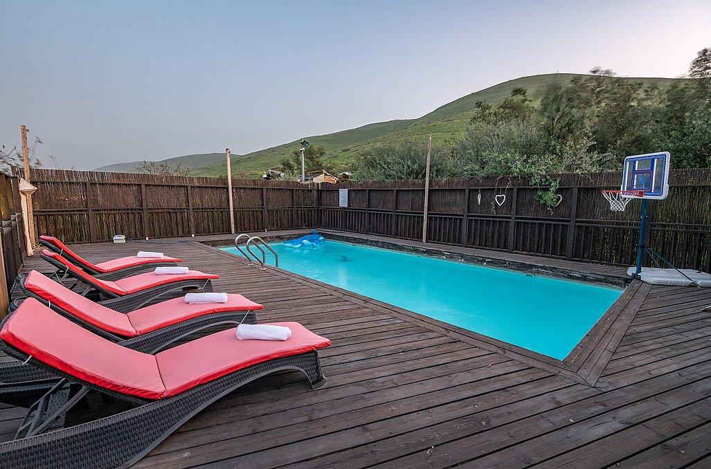 4.השימוש בבריכה ובמתקנים הנלווים הינו באחריות המתרחצים בלבד; אין מציל והאורחים מתחייבים להישמע לתדרוך והוראות בעלי הצימר.