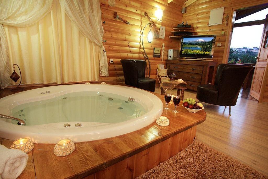 בכל בקתה ג'קוזי זוגי, חדר רחצה ומטבח פרטי, מיזוג אוויר ומרפסת נוף הפונה אל החצר ונוף הרי הגליל המהממת.