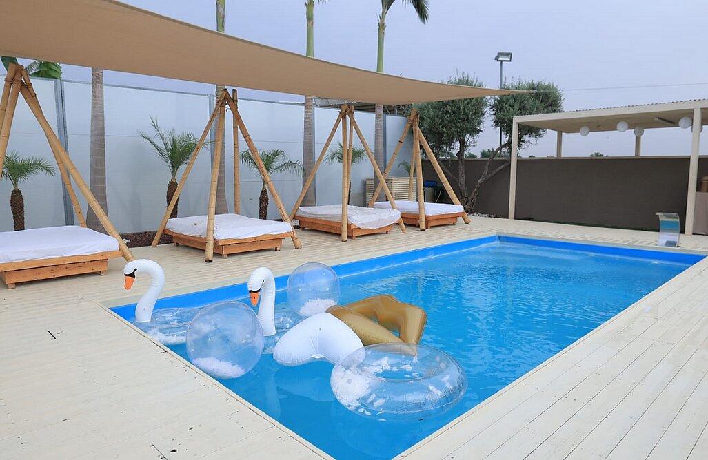 לקפוץ לבריכה וכן, ילדים קטנים מחויבים במצופים ובהשגחת מבוגר בלבד.