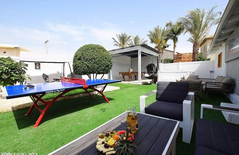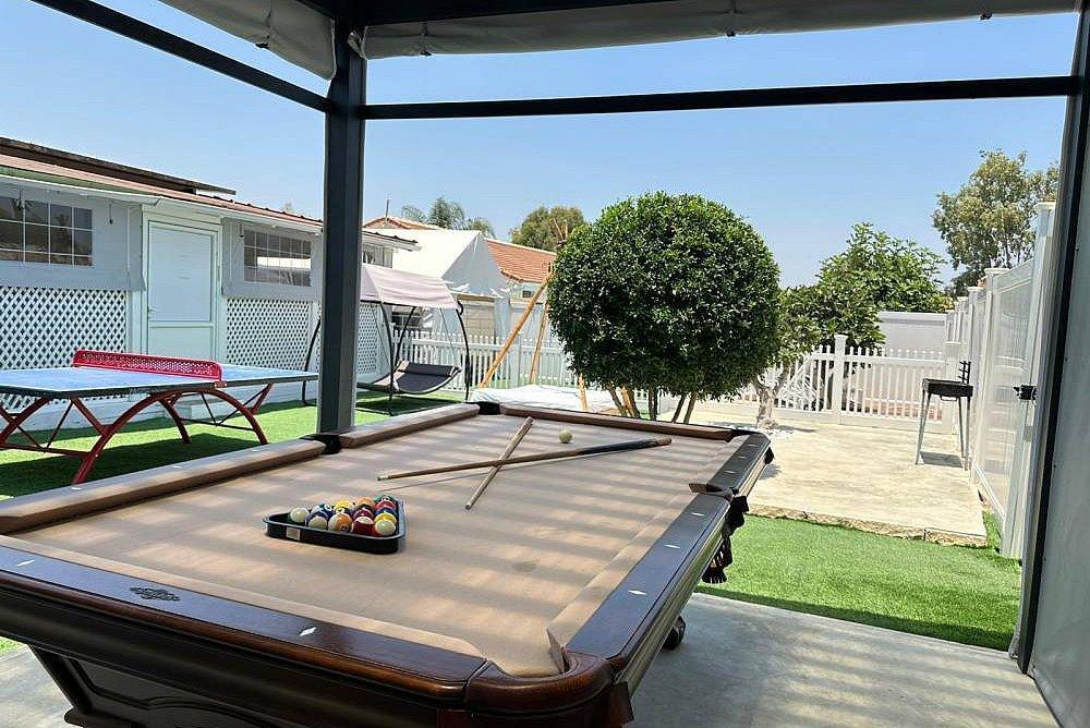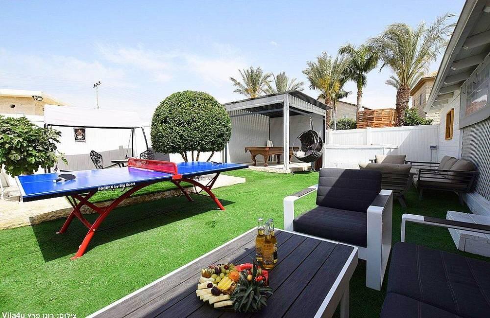 בוילה תיהנו מ- 5 חדרי שינה, סלון גדול, מטבח מאובזר, בריכת זרמים ושולחנות משחק.