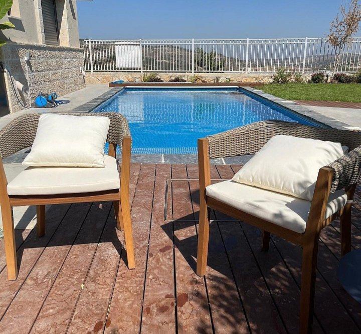 מתחם ענק ומפנק עם שישה חדרי שינה מרווחים, בריכה פרטית, ג’קוזי וסלון יוקרתי, חצר מטופחת עם פינות ישיבה, מטבח חוץ מאובזר ובור אש על גז, ריהוט איכותי, מזגנים, מאווררים, מכונת כביסה ומייבש – לכל מה שצריך בשהייה שלכם.