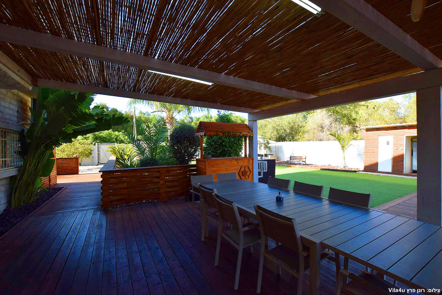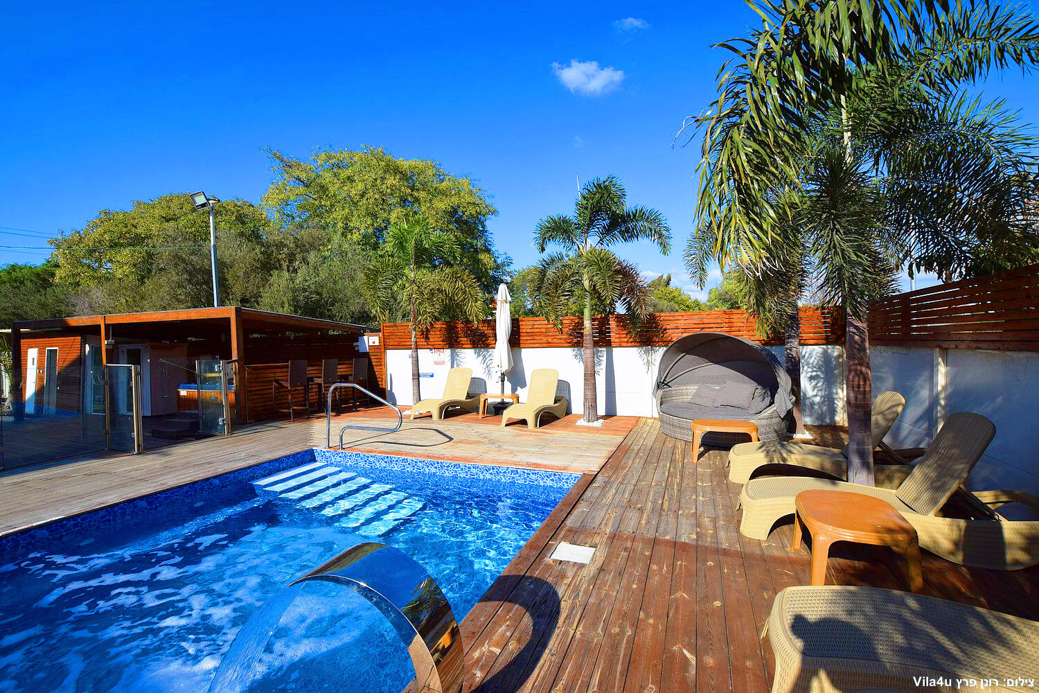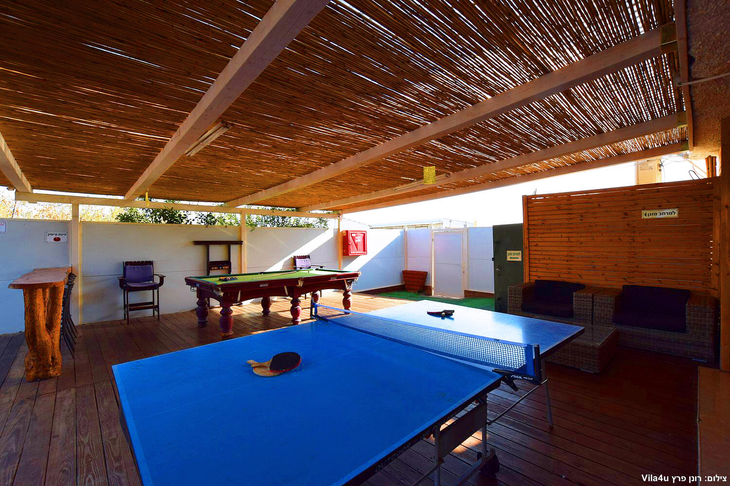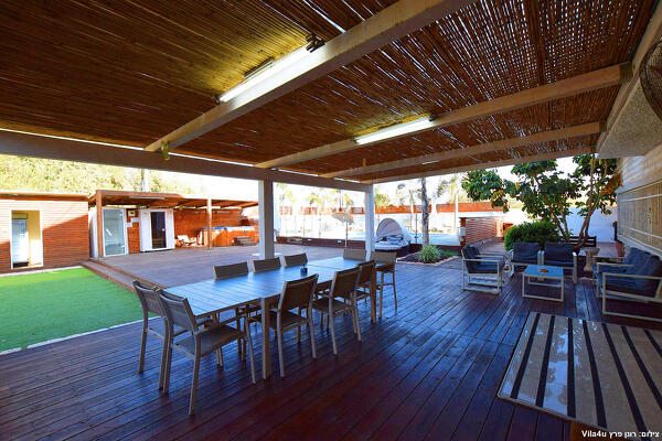 בחצר תוכלו להנות ממגון אטרקציות כגון בריכת שחייה מחוממת ומקורה, גקוזי ספא מפנק, משחקי שולחן- פינג פונג וביליארד מקצועי, עמדת מנגל, פינות ישיבה מוצלות ומיטות שיזוף.