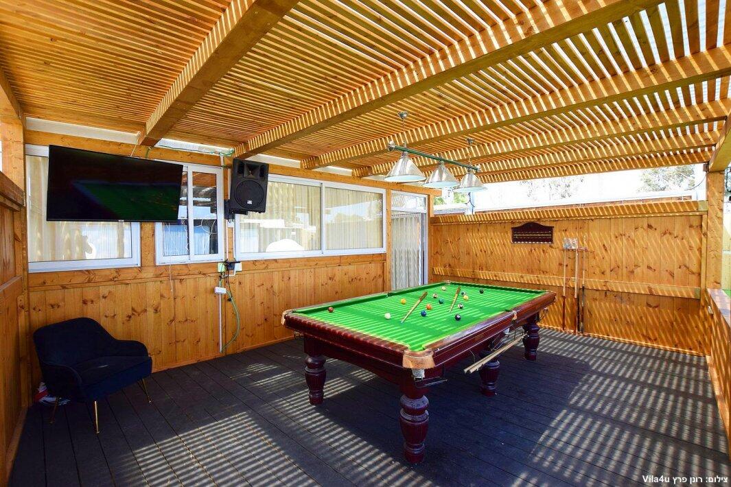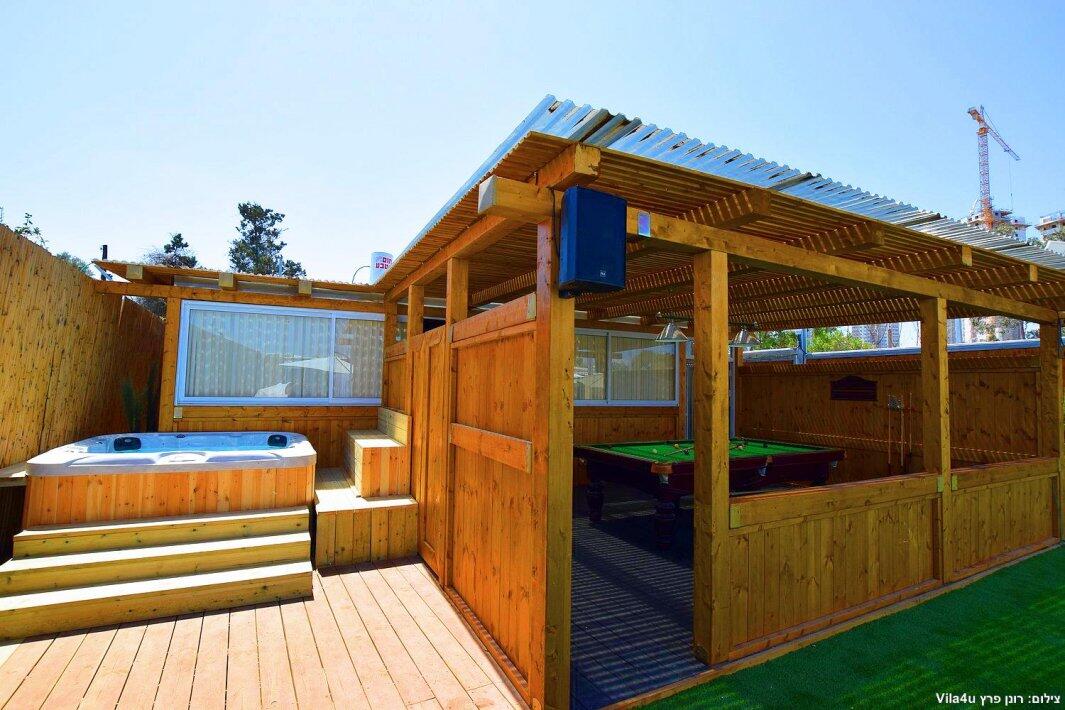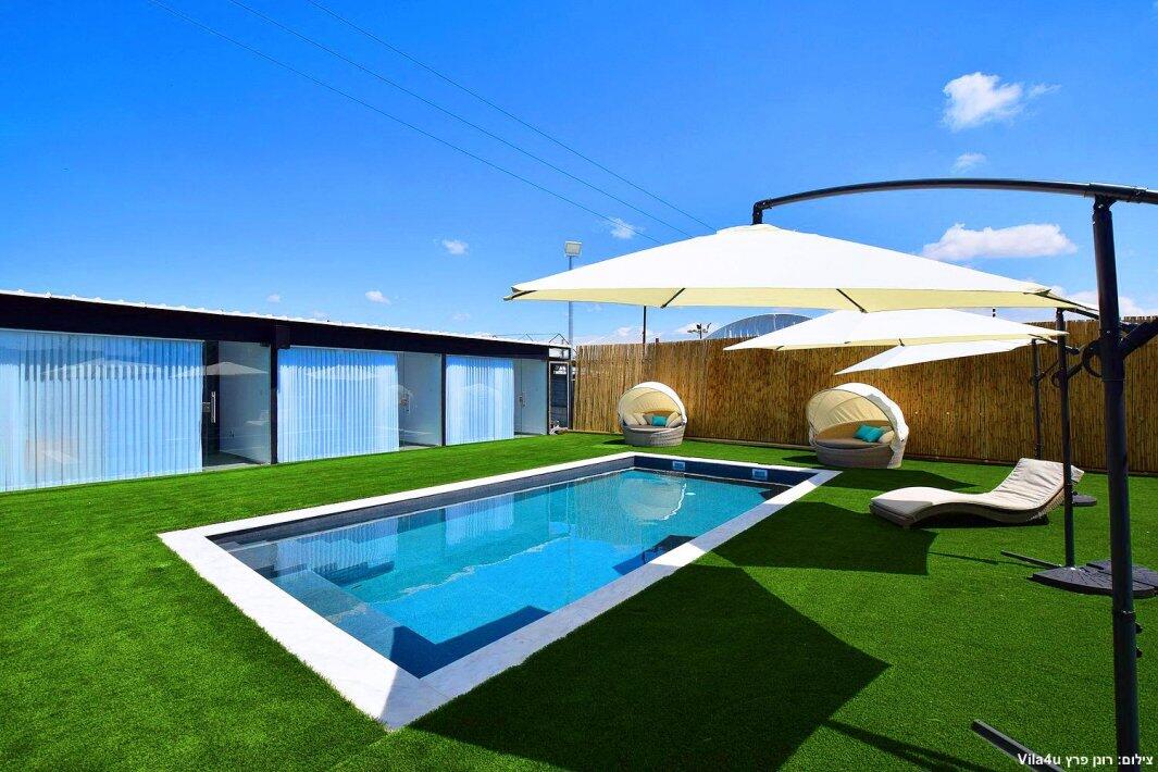 בוילה קיים 4 סוויטות יוקרתיות, סלון מפואר עם מערכת ישיבה, מערכות הגברה ותאורה, חצר עם מדשאות רחבות, בריכת שחייה בנויה צלולה, ג'קוזי ספא מפנק, ספות קונכייה ועוד פינות ישיבה פזורות, מערכת הגברה מקצועית, פינת מנגל מקצועית ומטבחון חיצוני.