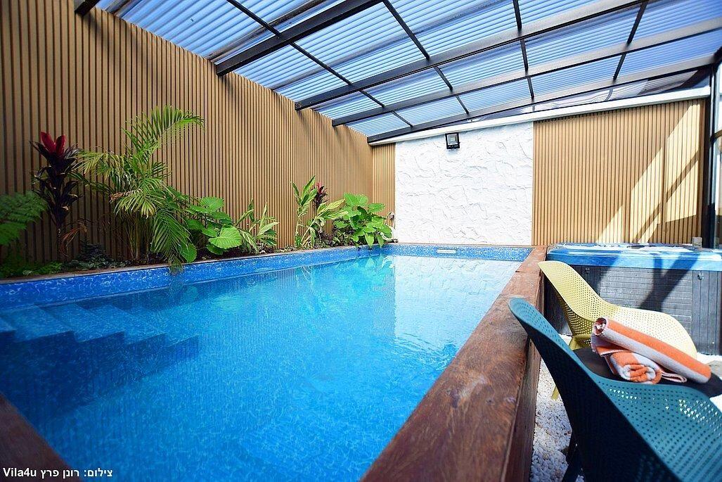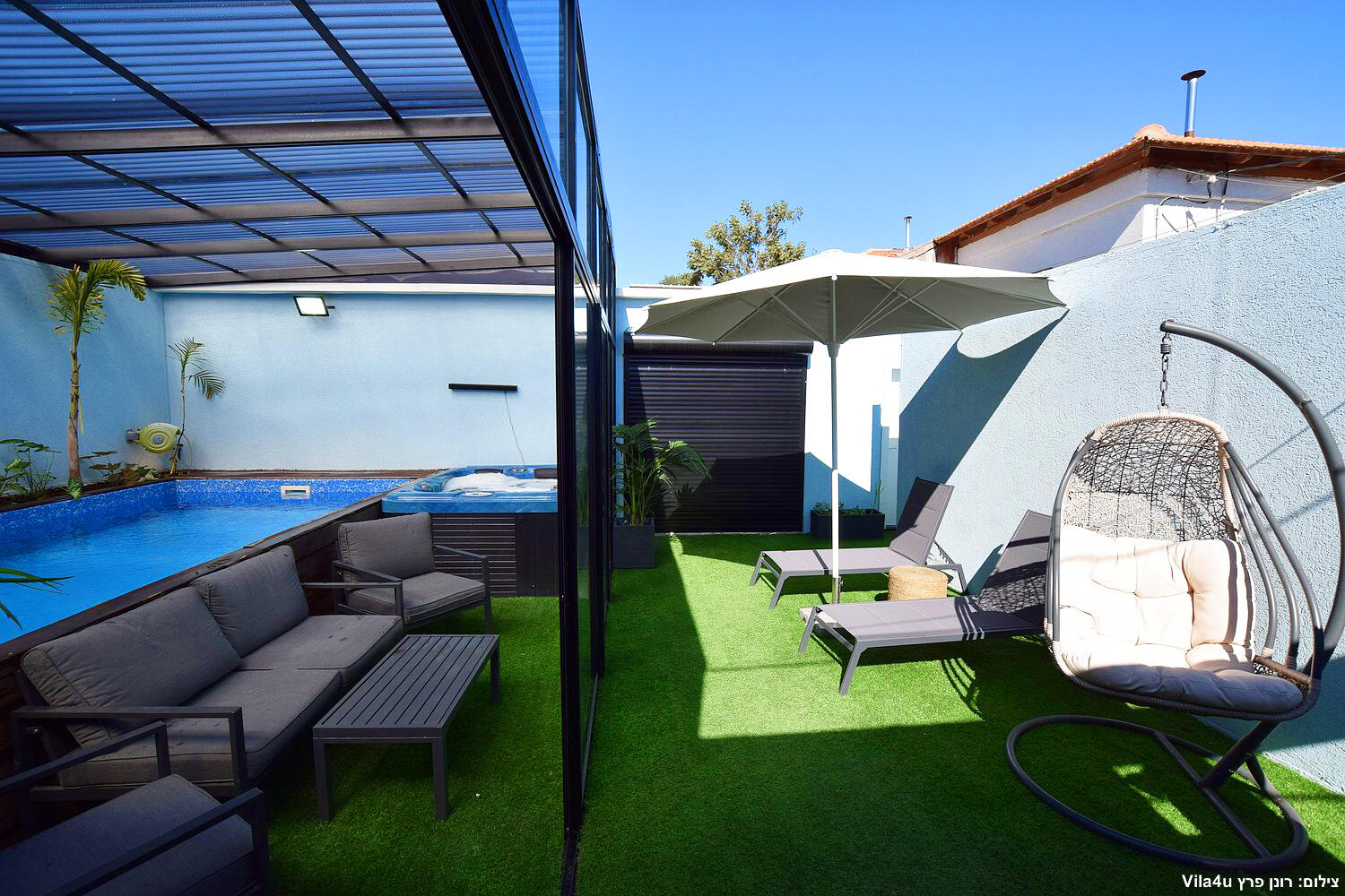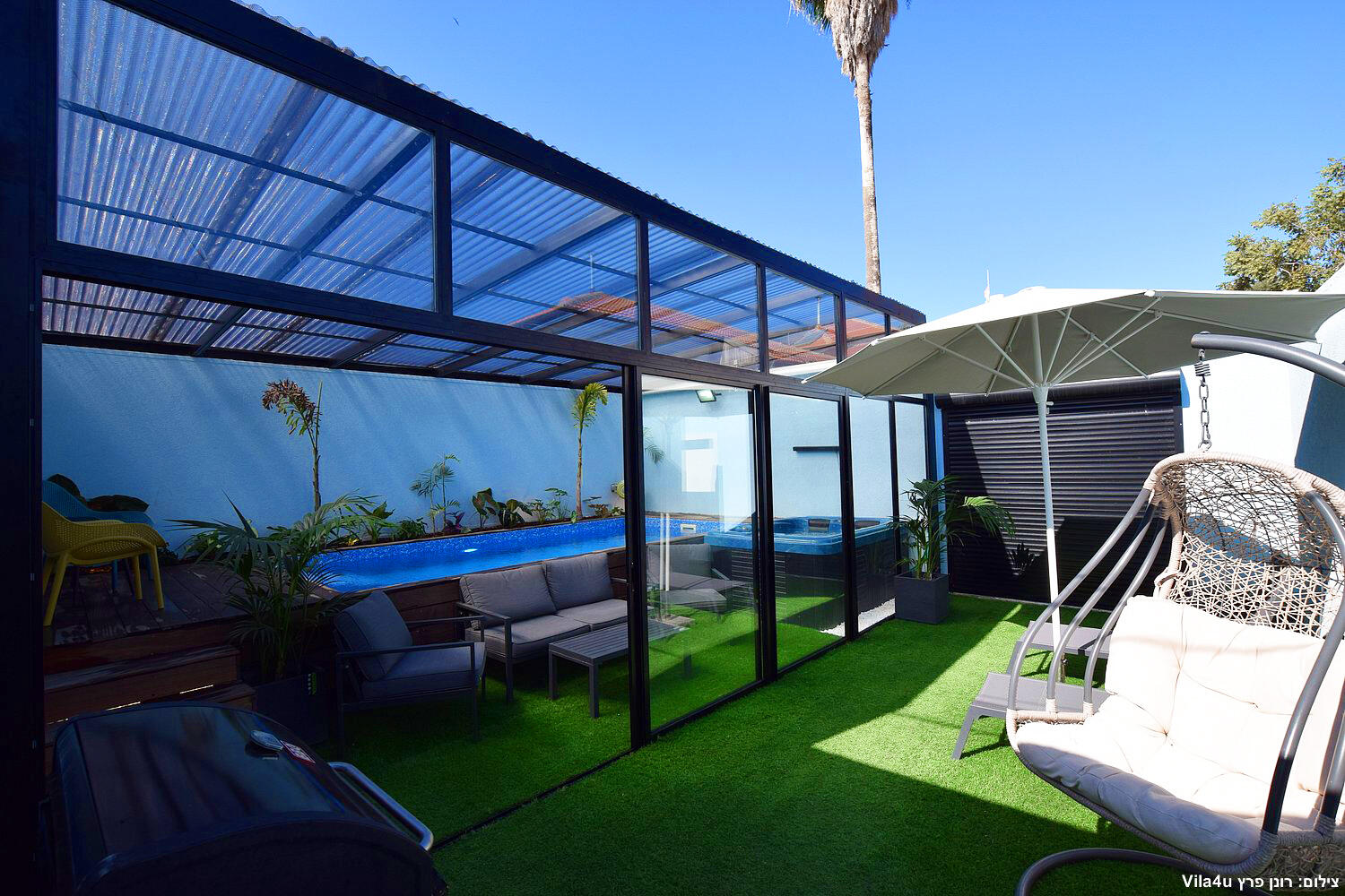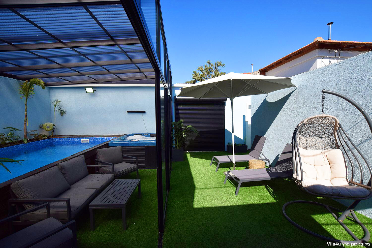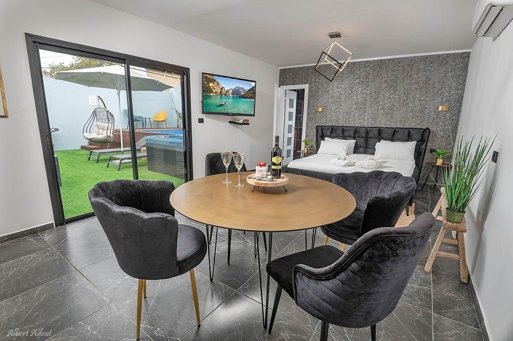 במתחם תוכלו להתפנק בבריכת שחייה צלולה, ג'קוזי ספא מחומם, מדשאות ופינות שיזוף, פינת מנגל גז מקצועית. סוויטה מעוצבת עם טלוויזיה, מטבחון מאובזר ומכונת אספרסו.