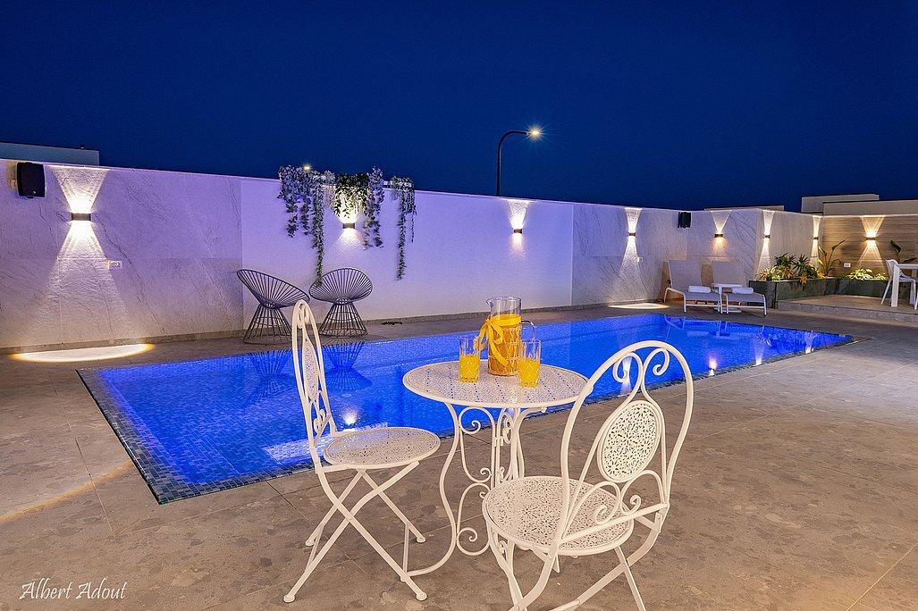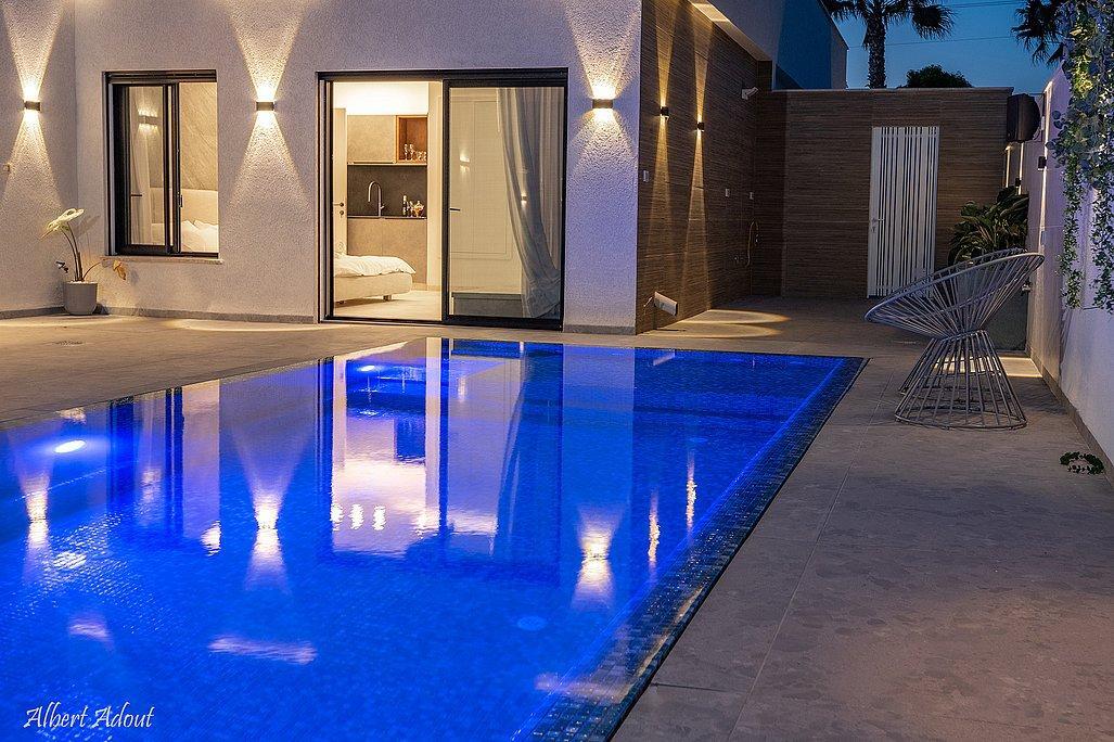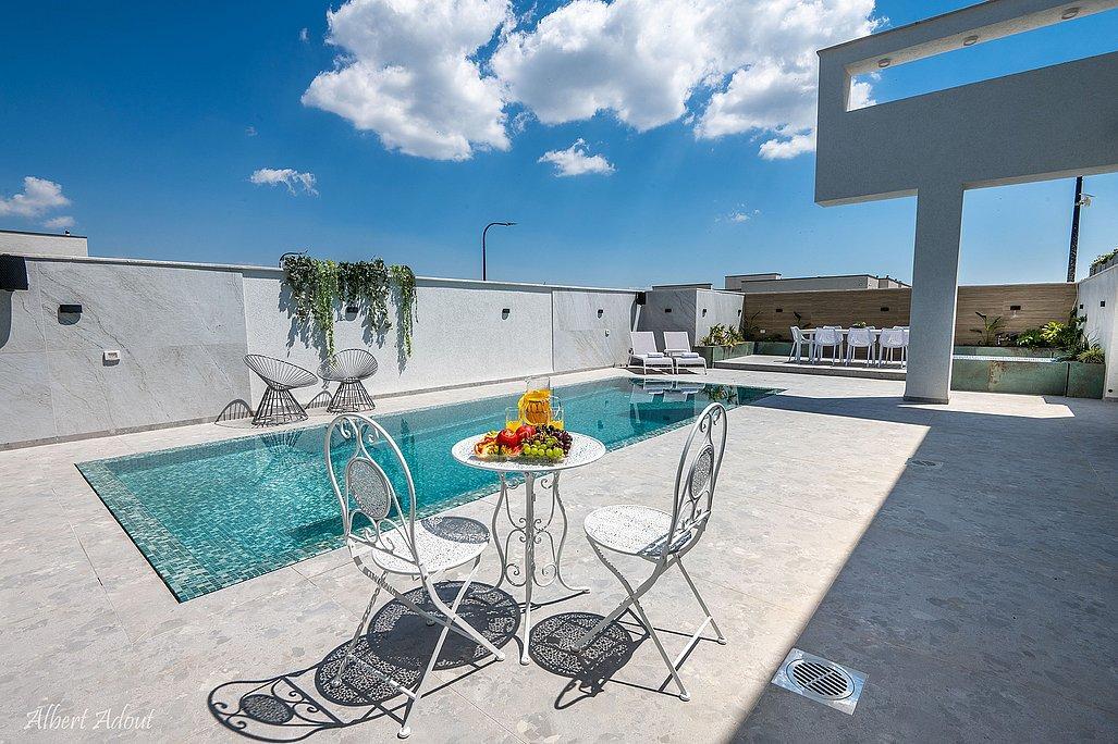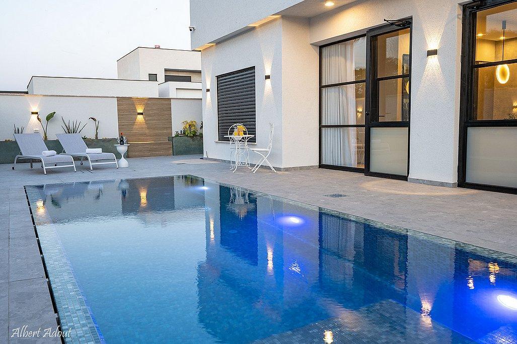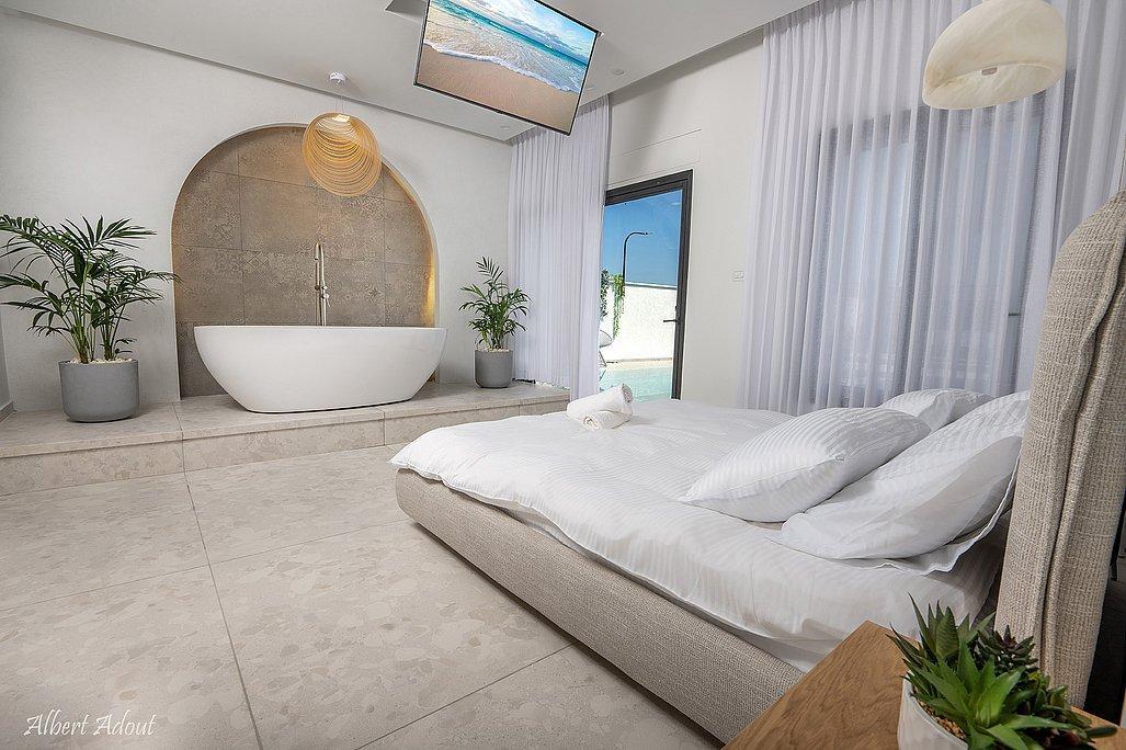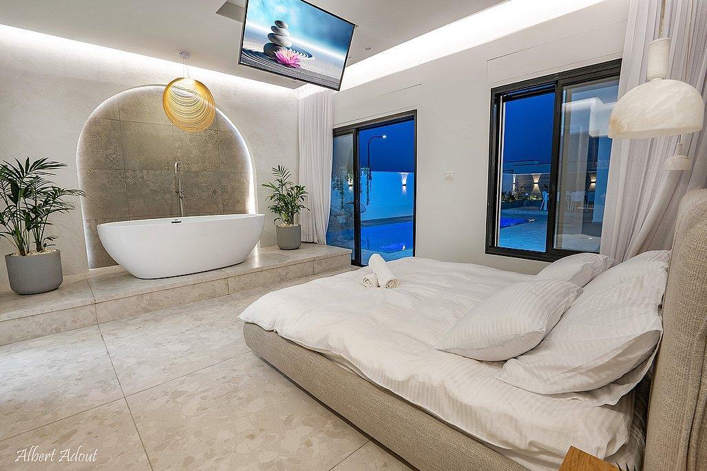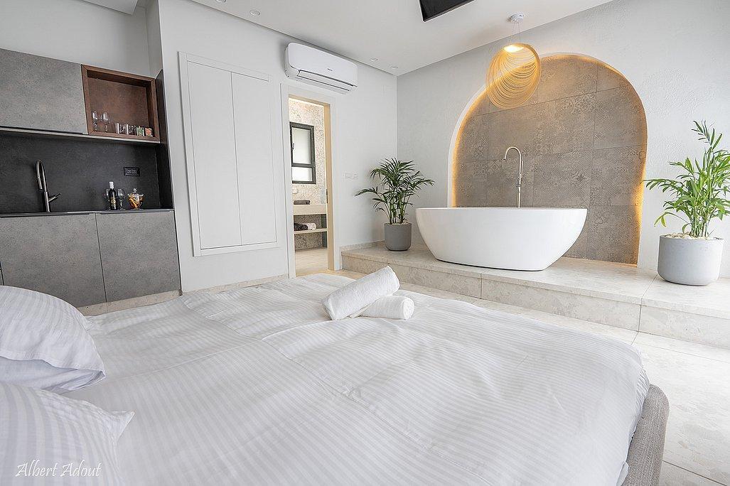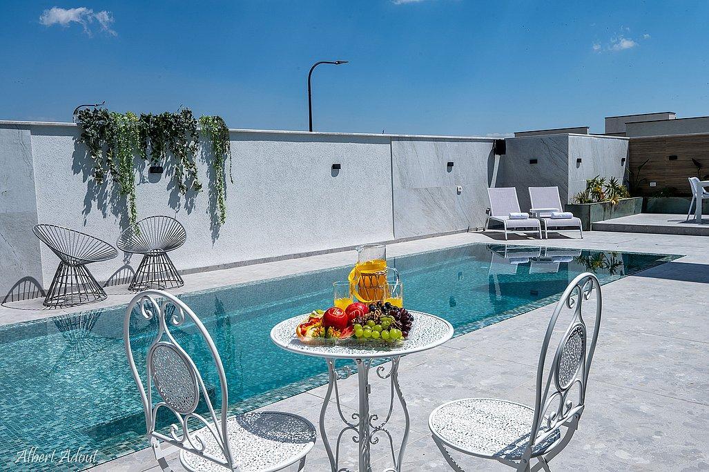 עם 5 סוויטות ייחודיות, חדר רחצה פרטי לכל סוויטה, סלון ומטבח מאובזרים בכל הנדרש, מרחב עצום בין אם אתם רוצים פרטיות ובין אם אתם צריכים הרבה מקום. מהוילה תצאו אל חצר יפיפיה המכילה בריכת שחייה גדולה ומחוממת, מגוון פינות ישיבה ושיזוף ועוד המון המון הפתעות.