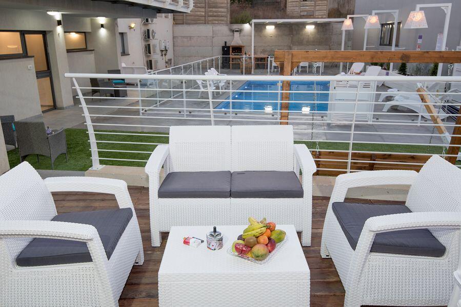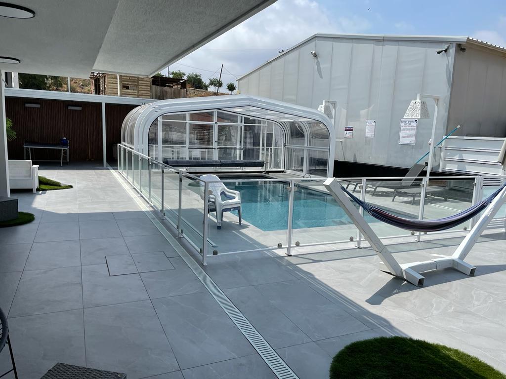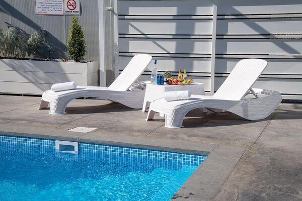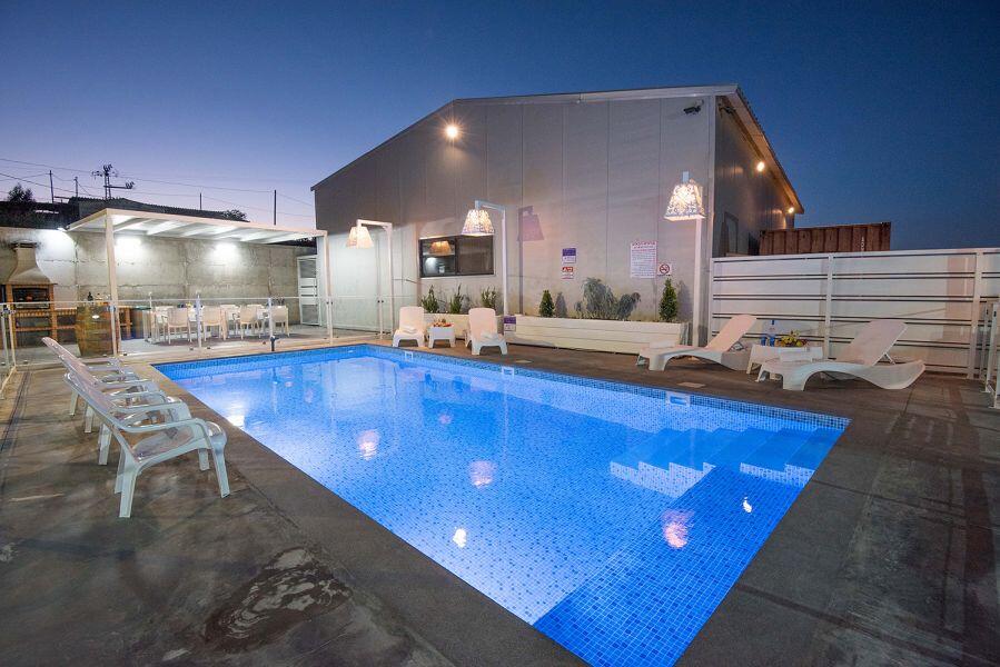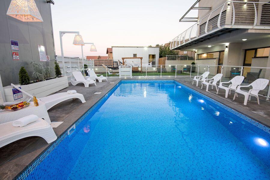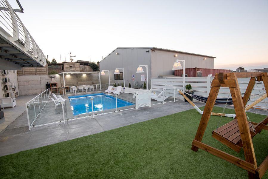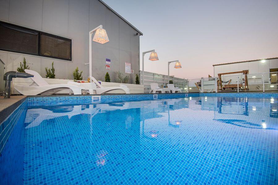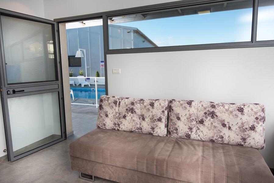 בחצר תוכלו להתפנק מבריכת שחייה גדולה, מחוממת ומקורה, מגוון פינות ישיבה עם שולחנות, ערסלים ונדנדה. בנוסף, ישנו גם ג'קוזי ספא מפנק, שולחן פינג פונג, מטבח חיצוני עם פינת אוכל, עמדת מנגל ועוד.