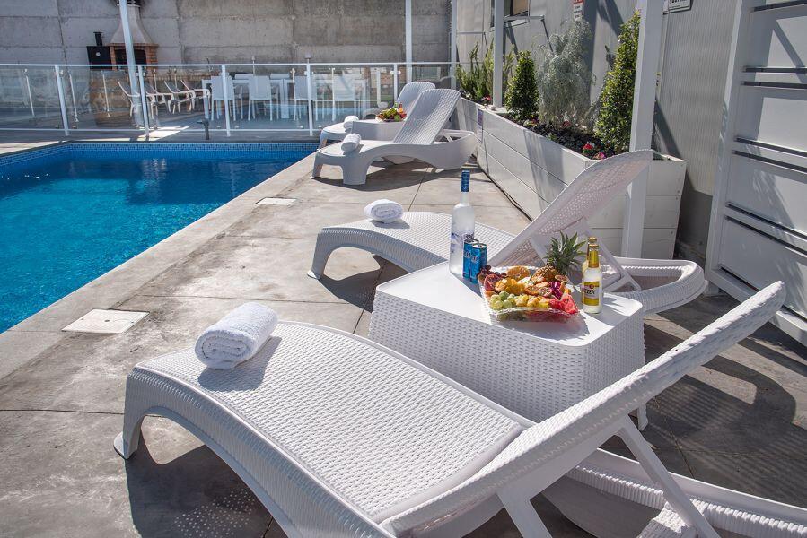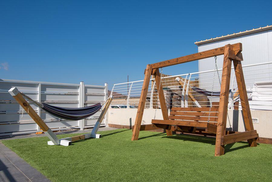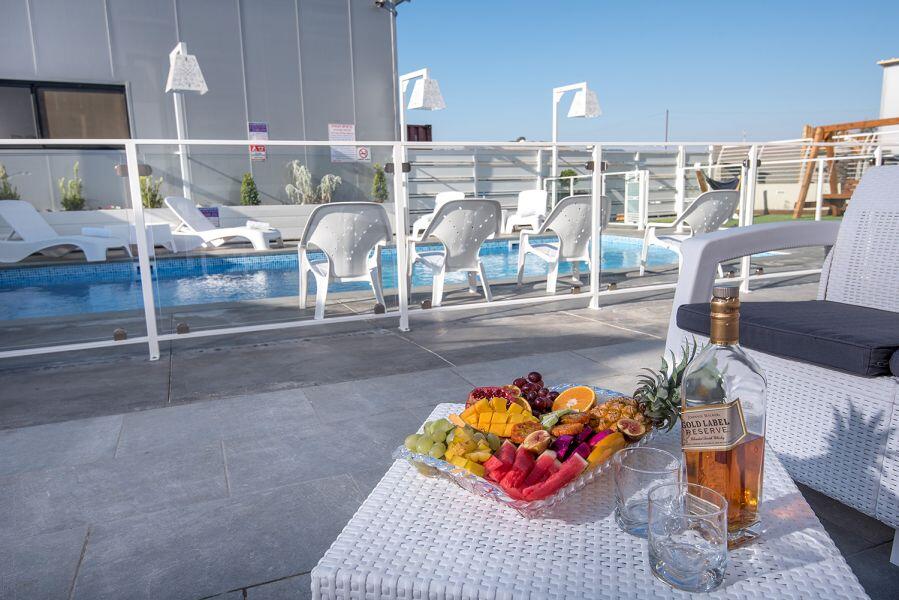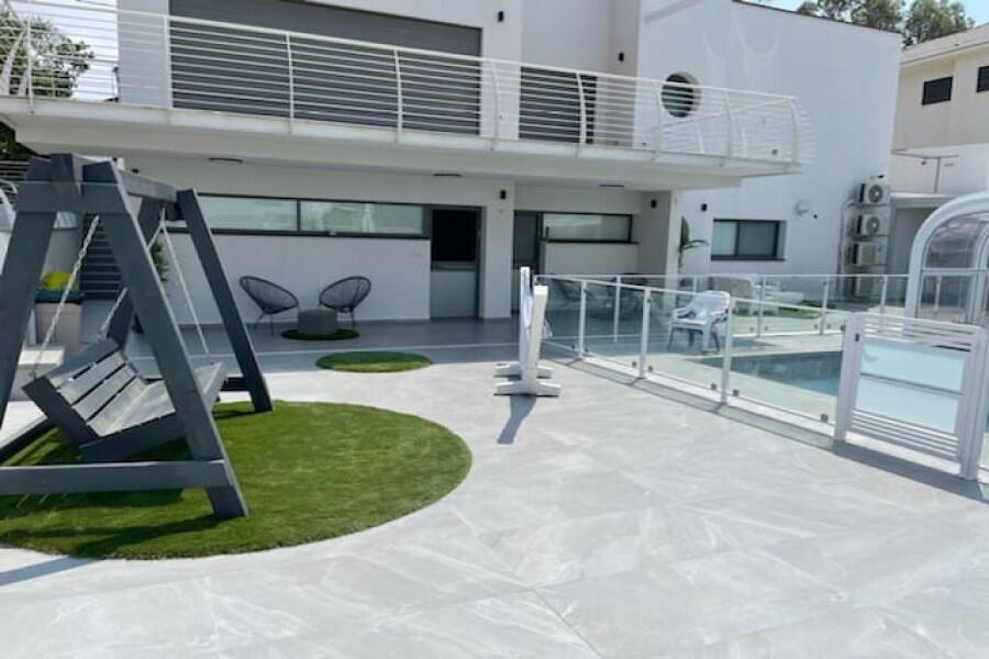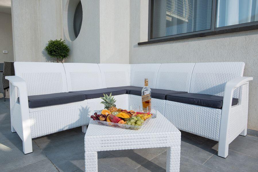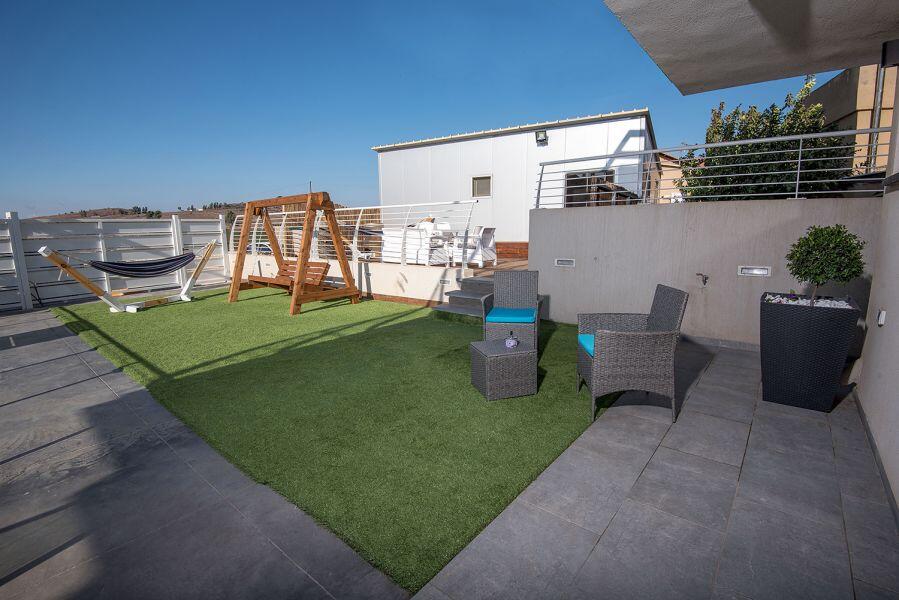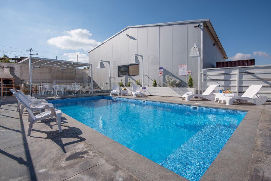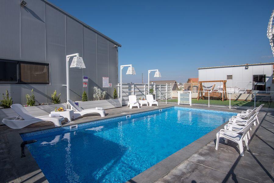 בחצר תוכלו להתפנק מבריכת שחייה גדולה, מחוממת ומקורה, מגוון פינות ישיבה עם שולחנות, ערסלים ונדנדה. בנוסף, ישנו גם ג'קוזי ספא מפנק, שולחן פינג פונג, מטבח חיצוני עם פינת אוכל, עמדת מנגל ועוד.