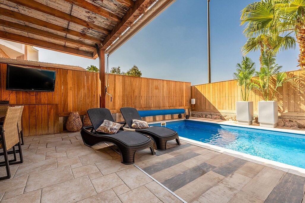 מתחם U360 באילת מציע חוויית נופש יוקרתית עם 45 דירות מעוצבות לפרטי פרטים, הכוללות חדרי שינה מפוארים, סלון מרווח עם מערכת ישיבה יוקרתית ומסך צפייה עם נטפליקס, ומטבח מאובזר. האורחים נהנים מבריכת שחייה מחוממת ומקורה, סאונות רטובה ויבשה, חדר כושר, וניתן להזמין ארוחות בוקר עשירות, טיפולים ועיסויים ואימוני פילאטיס בתיאום מראש. צוות המקום זמין לכל שאלה ובקשה, ומבטיח חופשה שאין שניה לה