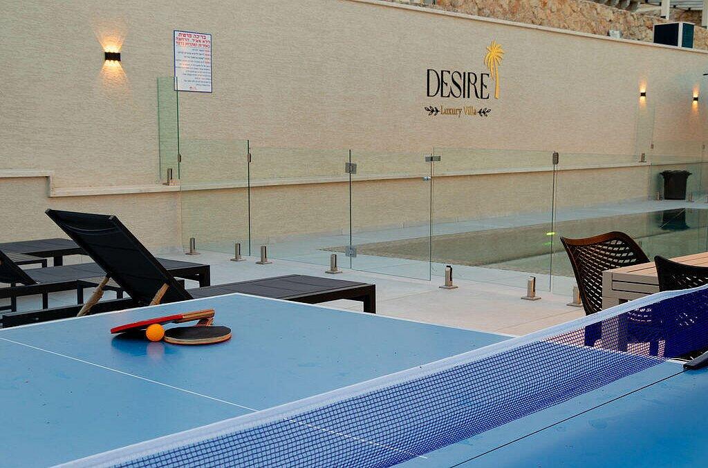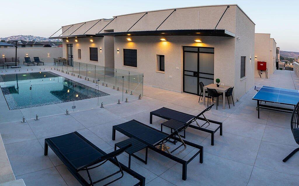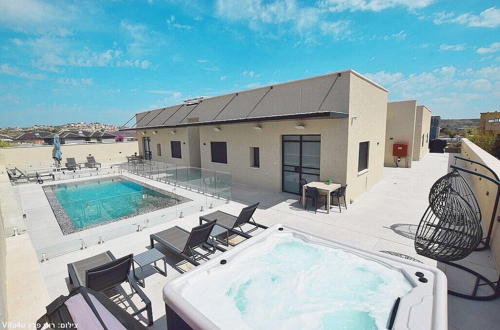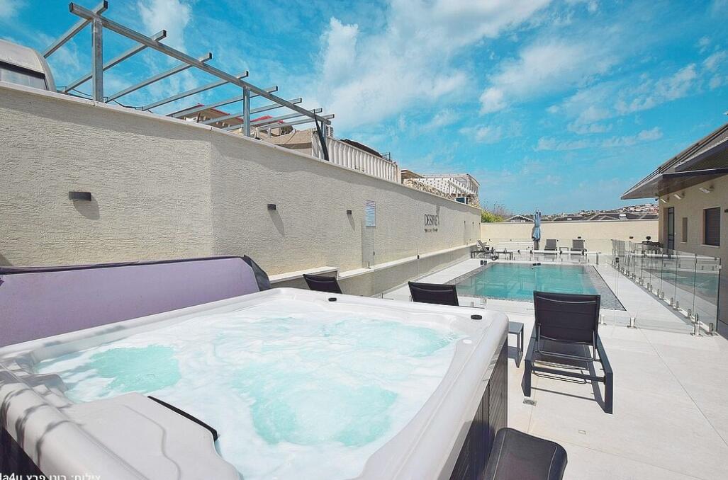 חופשה בלתי נשכחת בוילת דיזאייר בוטיק וילה דיזאייר בוטיק מציעה חופשה יוקרתית ומפנקת במיקום מושלם! הוילה מתפרסת על 330 מ"ר ומכילה 7 חדרים, בהם 5 חדרי שינה + 2 סוויטות מפנקות. תיהנו מבריכה פרטית מחוממת ומגודרת, ג'קוזי ספא, מתקני שעשועים לילדים ופינת מנגל מאובזרת. המקום המושלם למשפחות, קבוצות, שבתות חתן וימי גיבוש. אל תפספסו את החוויה הייחודית!