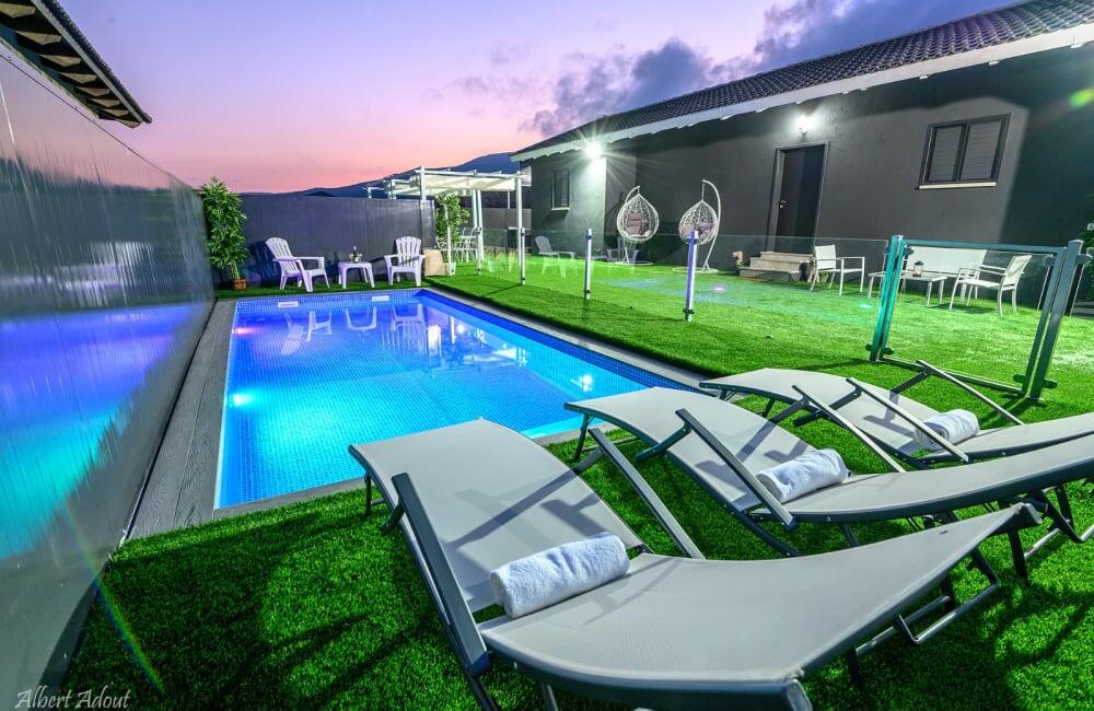 4.השימוש בבריכה ובמתקנים הנלווים הינו באחריות המתרחצים בלבד; אין מציל והאורחים מתחייבים להישמע לתדרוך והוראות בעלי הצימר.