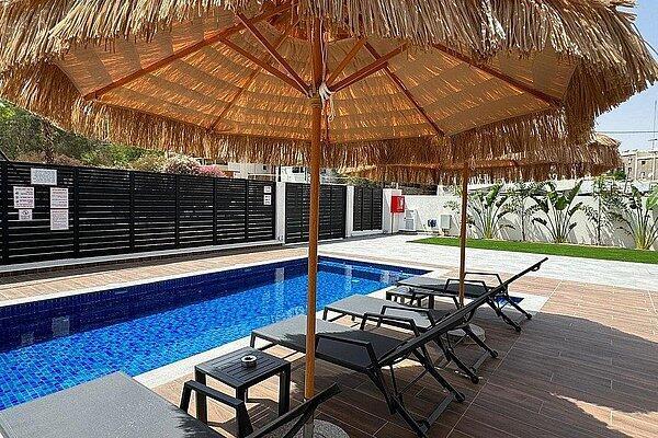 הוילה נמצאת בקו ראשון לים ורק 15 דקות ממרכזי הבילוי. המתחם מונה 5 חדרי שינה כאשר כל אחד מפנק ומאובזר בכל הנדרש. בנוסף תוכלו להנות מסלון יוקרתי עם מערכת ישיבה וטלוויזיה, פינת אוכל לסעודות ומטבח מאובזר.