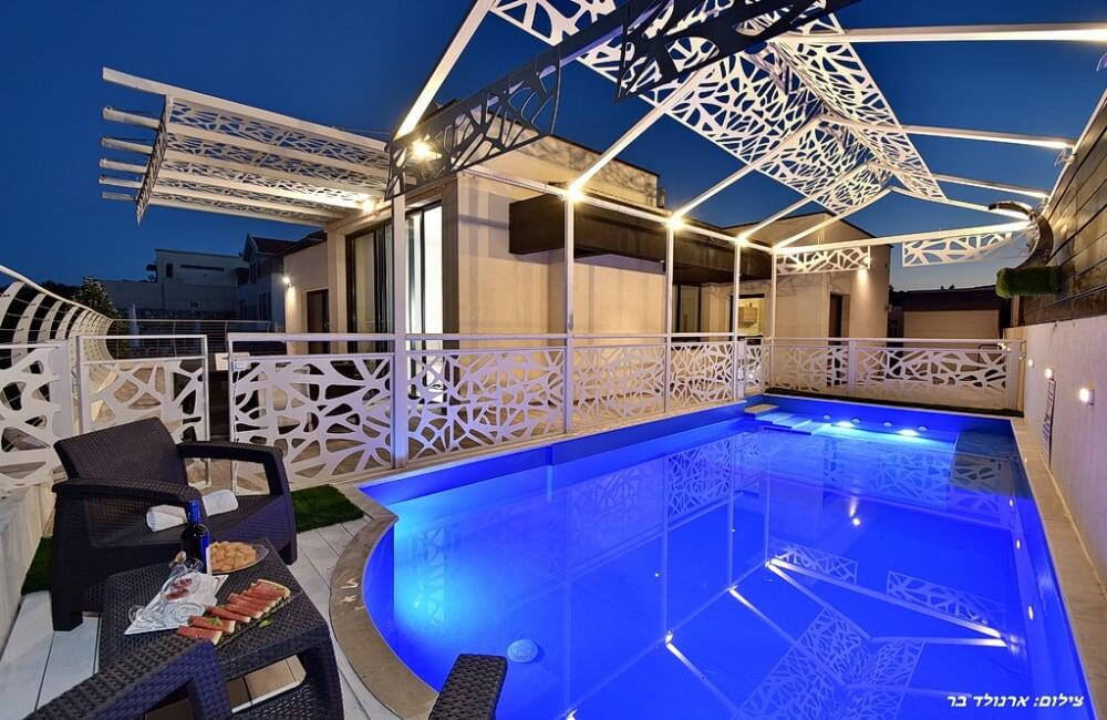 4.השימוש בבריכה ובמתקנים הנלווים הינו באחריות המתרחצים בלבד; אין מציל והאורחים מתחייבים להישמע לתדרוך והוראות בעלי הצימר.