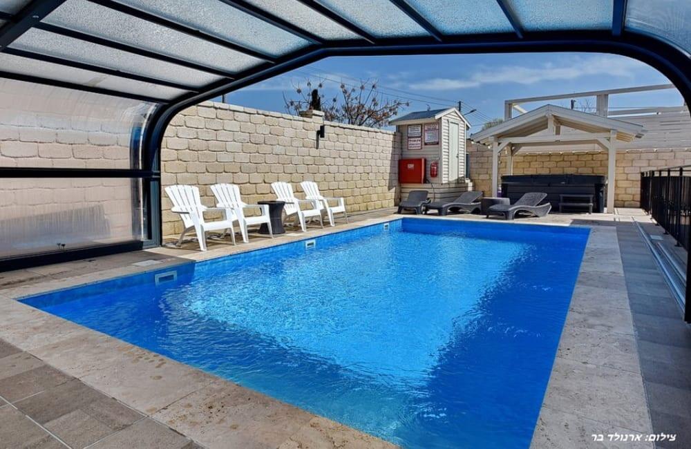4.השימוש בבריכה ובמתקנים הנלווים הינו באחריות המתרחצים בלבד; אין מציל והאורחים מתחייבים להישמע לתדרוך והוראות בעלי הצימר.