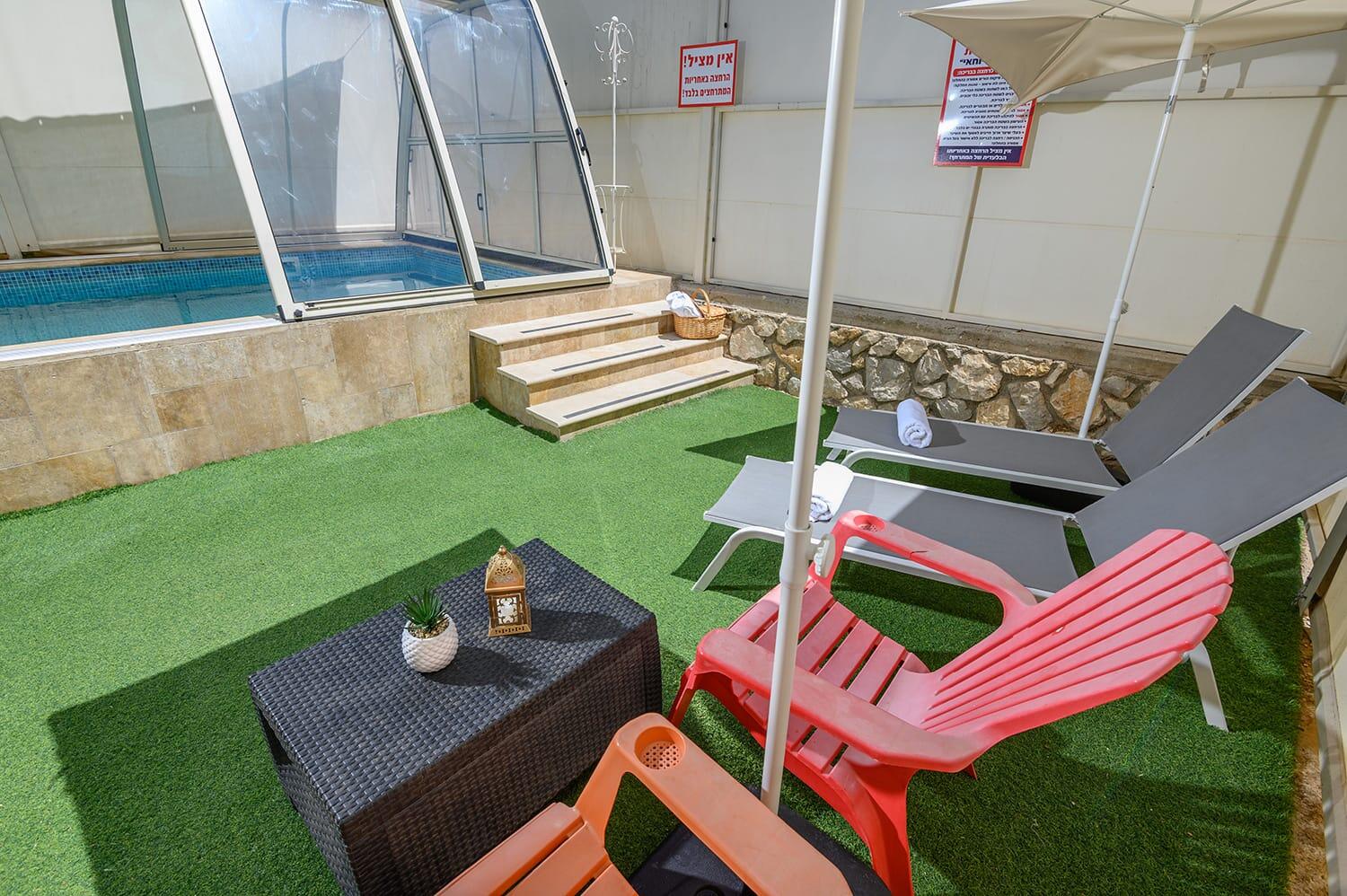 4.השימוש בבריכה ובמתקנים הנלווים הינו באחריות המתרחצים בלבד; אין מציל והאורחים מתחייבים להישמע לתדרוך והוראות בעלי הצימר.