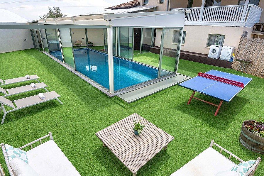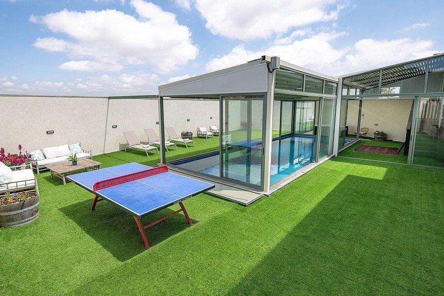 חצר האחוזה מציעה בריכה פרטית מחוממת ומקורה, ג’קוזי ספא לוהט ושלל אטרקציות לכל המשפחה.
