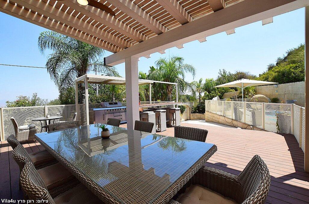 בוילה 9 חדרי שינה, מטבח מאובזר, סלון אירוח מרווח, פינת אוכל, פסנתר, חצר ירוקה עם בריכת שחיה מחוממת בעונת החורף ומפל מים, משחקי שולחן ומסביב הכול ירוק, חייגו עכשיו לכל הפרטים.