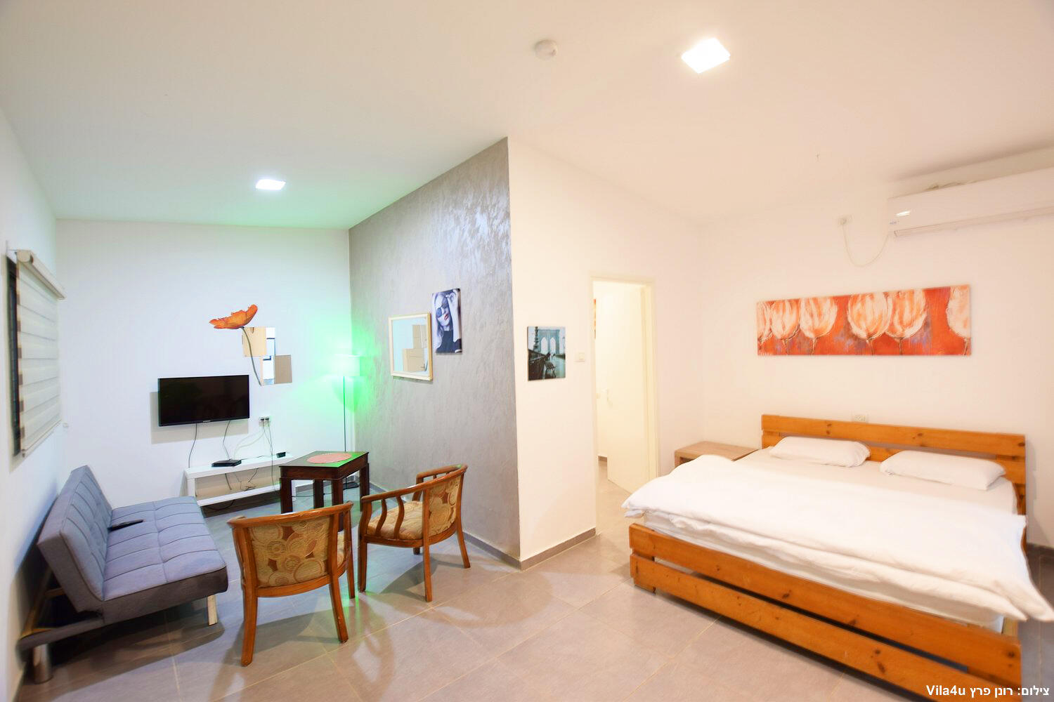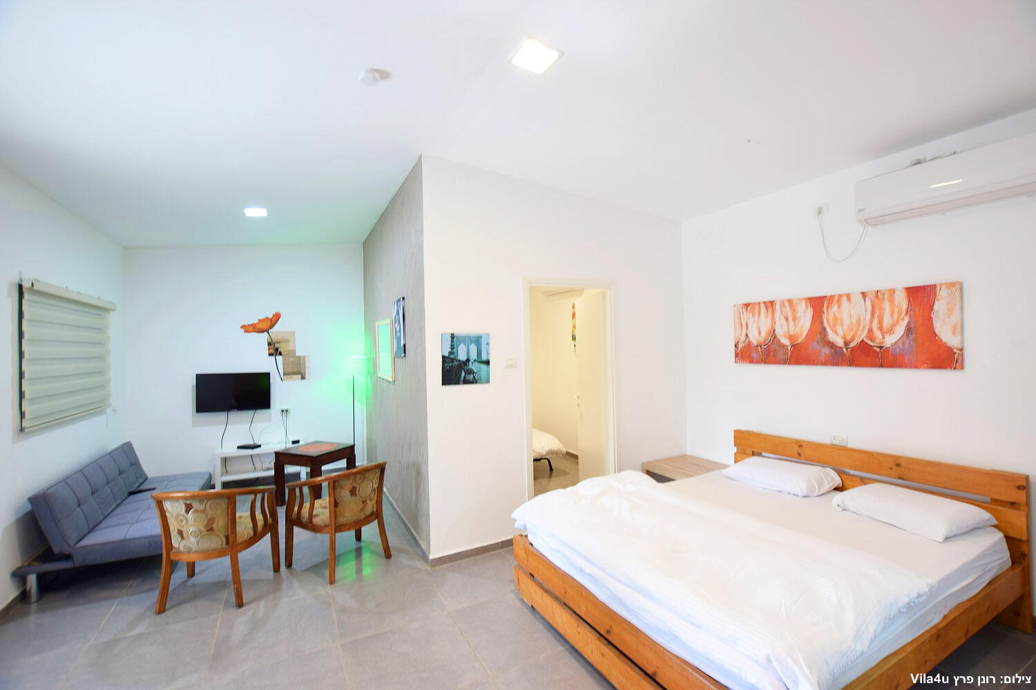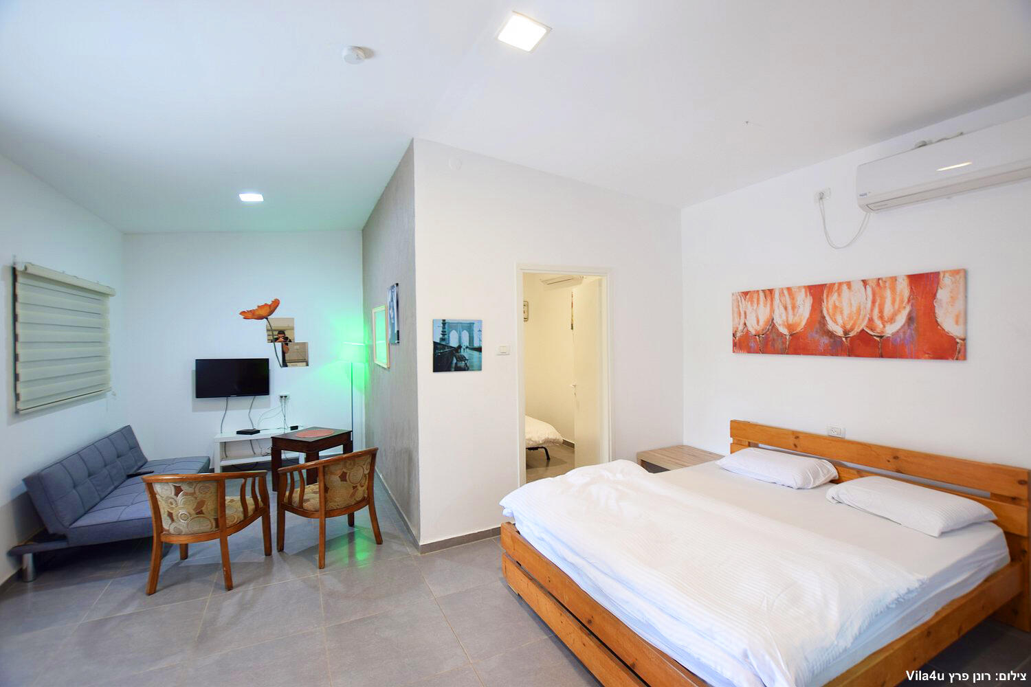 יחידות זוגיות פתוחות כחלל אחד, ג'קוזי,מטבח מאובזר,לכל יחידה מרפסת עם פינת ישיבה זוגית אל מול חצר המטופחת.