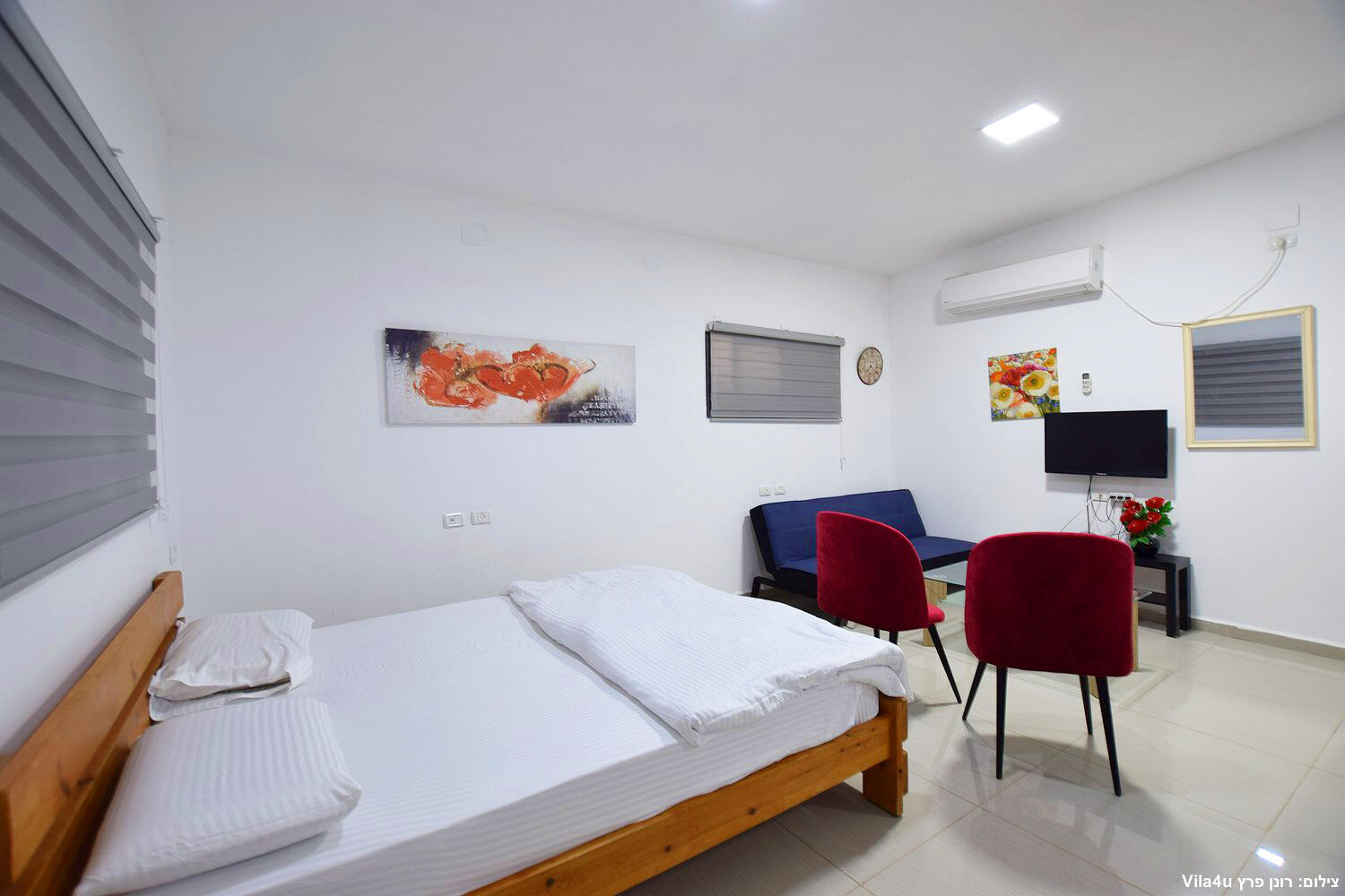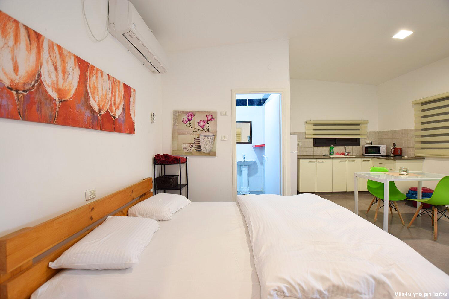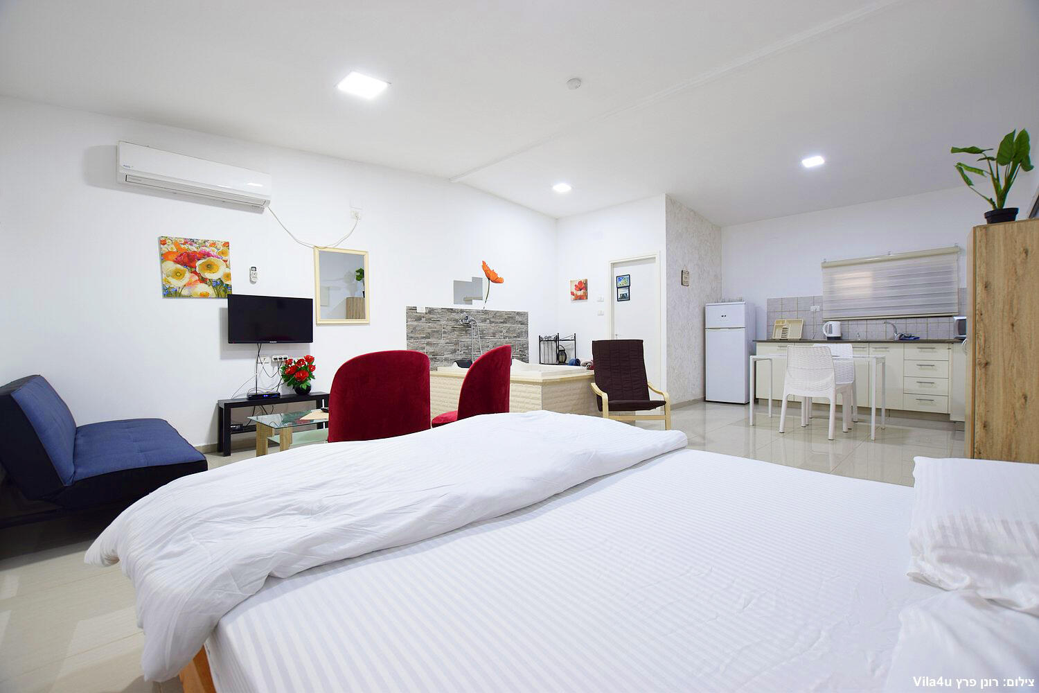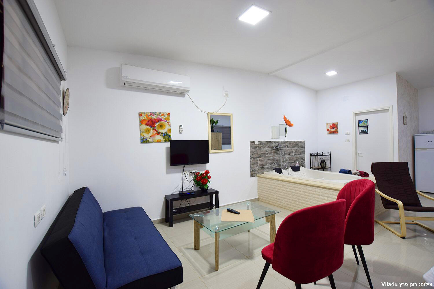 יחידות זוגיות פתוחות כחלל אחד, ג'קוזי,מטבח מאובזר,לכל יחידה מרפסת עם פינת ישיבה זוגית אל מול חצר המטופחת.