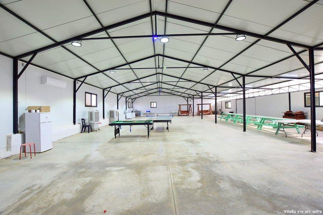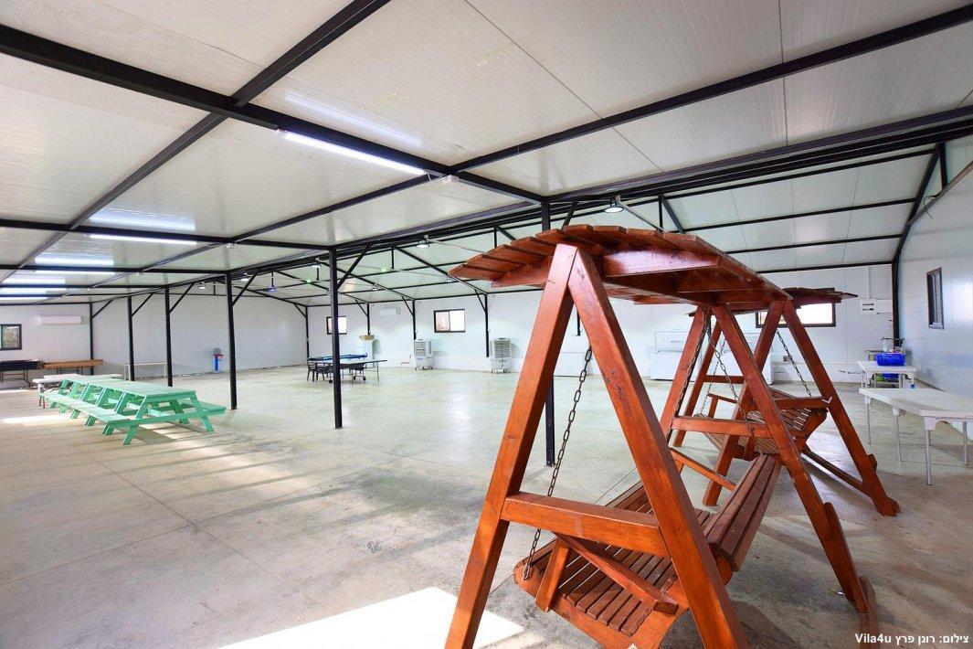 במתחם החיצוני בריכה שחיה מקורה, ג'קוזי ספא מפנק, ערסלים, ריהוט גן, פינת מנגל, מדשאה רחבת ידיים ותאורה לילית נעימה. חדש במתחם >> אולם גדול לכל סוגי האירועים עד 400 אורחים.