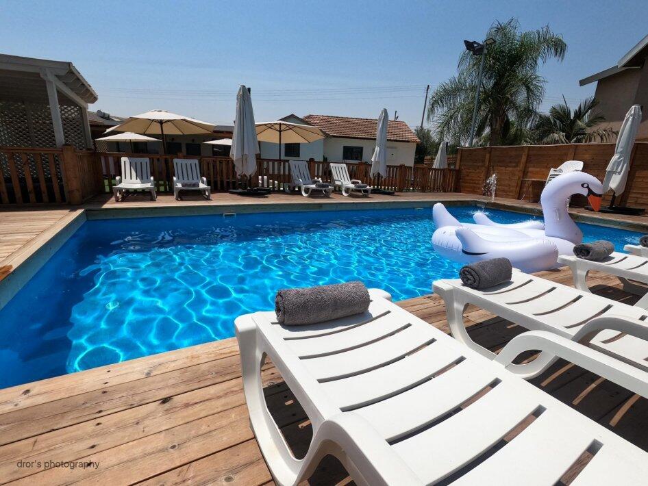 4.השימוש בבריכה ובמתקנים הנלווים הינו באחריות המתרחצים בלבד; אין מציל והאורחים מתחייבים להישמע לתדרוך והוראות בעלי הצימר.