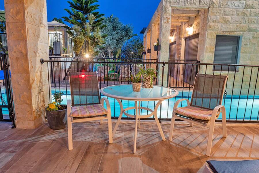 4.השימוש בבריכה ובמתקנים הנלווים הינו באחריות המתרחצים בלבד; אין מציל והאורחים מתחייבים להישמע לתדרוך והוראות בעלי הצימר.
