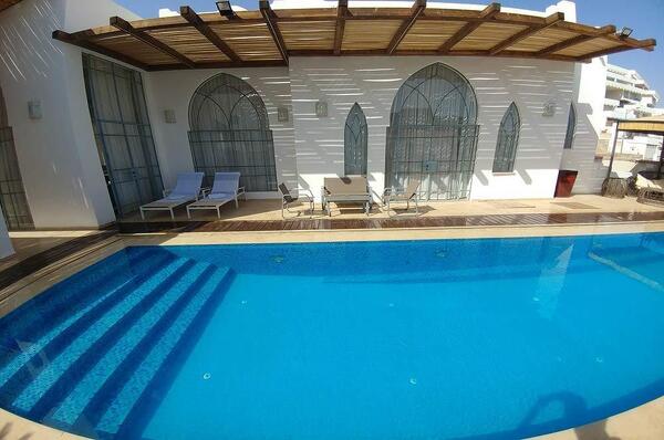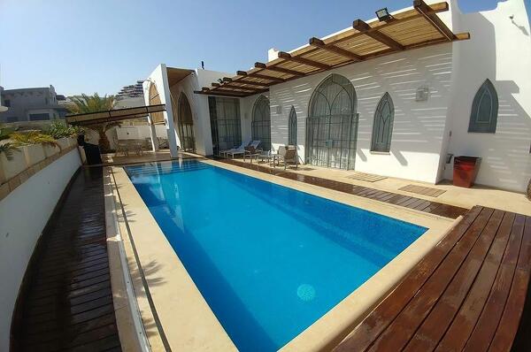 בוילה 8 חדרי שינה, מטבח מאובזר, סלון גדול במיוחד ועוד.. במתחם החיצוני בריכת שחייה ענקית בגודל: 11X3 מטר, מחוממת בחורף ומגודרת. ריהוט גן חיצוני, פינת מנגל ועוד שלל הפתעות ופינוקים.