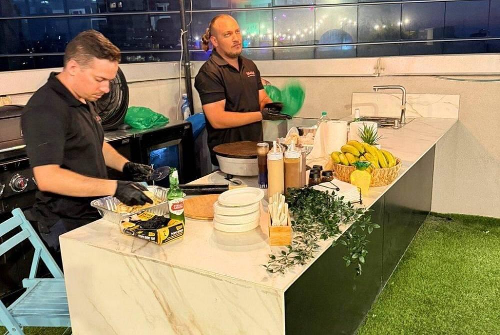 במרכז המתחם ניצב בר מקצועי מוקף בכסאות בר מעוצבים, המזמין את האורחים לטעום ממבחר משקאות באווירה אורבנית מתוחכמת. המרחבים הירוקים של המדשאות המטופחות ומגוון פינות הישיבה מספקים אפשרויות אירוח גמישות תחת כיפת השמיים, בין אם למפגשים אינטימיים או לחגיגות סוערות. לנוחיות המארחים, המתחם כולל חדר התארגנות פרטי ומטבח מאובזר היטב, המבטיחים שכל פרט באירוע יתנהל בצורה חלקה ומקצועית. ולמפגשים קולינריים, עמדת המנגל המקצועית מזמינה אתכם להעשיר את האירוע עם טעמים משובחים שישאירו רושם עז על האורחים.