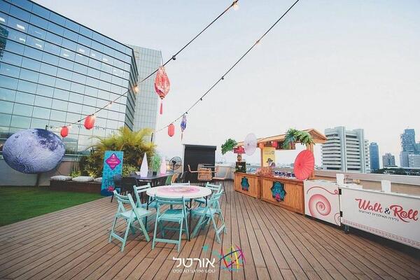 ברוכים הבאים לאלמאגו רוף תל אביב - מתחם אירועים שמיימי המרחף מעל פסיפס האורות העירוני. ממוקם על גג קסום בלב המטרופולין התוסס, המקום היוקרתי שלנו ערוך להפליא לאירוח של עד 100 אורחים בסביבה שטרם נראתה כמותה. העיצוב המוקפד והאלגנטי של המתחם משתלב באופן מושלם עם הפנורמה המרהיבה של קו הרקיע התל אביבי, יוצר תפאורה ייחודית לכל אירוע. החוויה החושית מושלמת הודות למערכות ההגברה והתאורה המתקדמות שלנו, המעניקות לכל חגיגה מימד עוצמתי ובלתי נשכח.