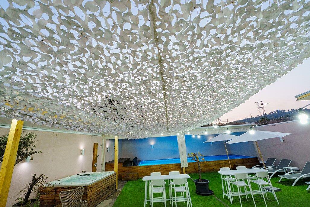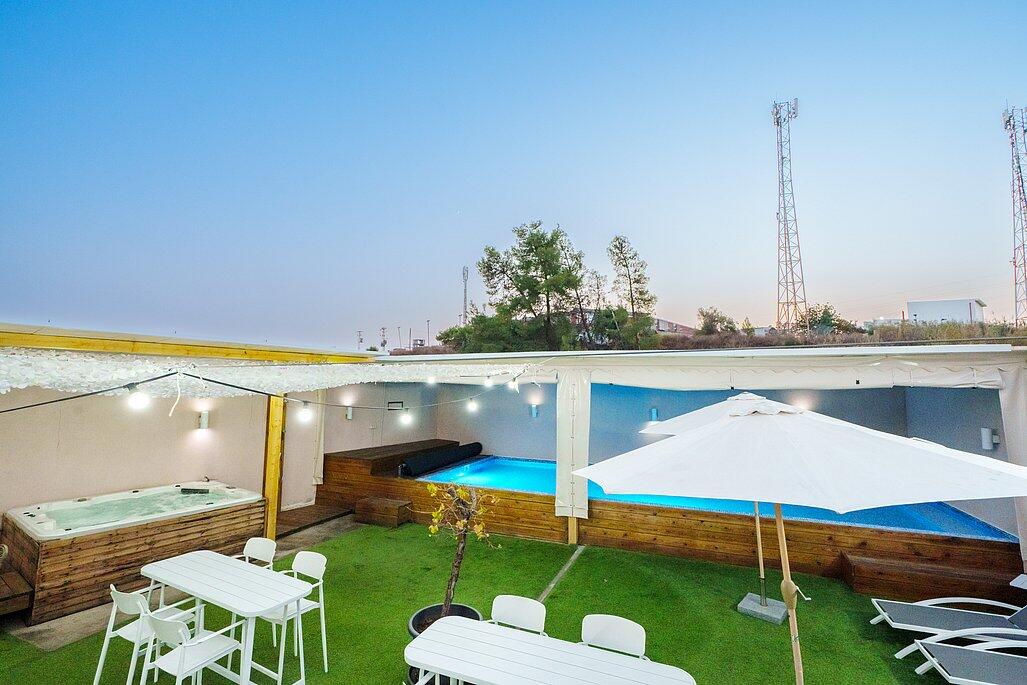 במרכז המתחם המרהיב תגלו את פנינת האירוח - בריכת שחייה מחוממת ומקורה המאפשרת הנאה מימית בכל ימות השנה, לצד ג'קוזי ספא מפנק שמזמין אתכם להתרגע ולהתחדש. המרחב החיצוני מציע חצר מטופחת להפליא עם מדשאות רחבות ידיים ופינות ישיבה אינטימיות, המאפשרות לאורחים ליהנות מהאווירה הקסומה. לאלו שאוהבים לארח ברמה גבוהה, המתחם גאה להציג מטבח חוץ מאובזר במלואו, הכולל עמדת מנגל מקצועית להכנת מטעמים שישאירו את האורחים מרוצים.