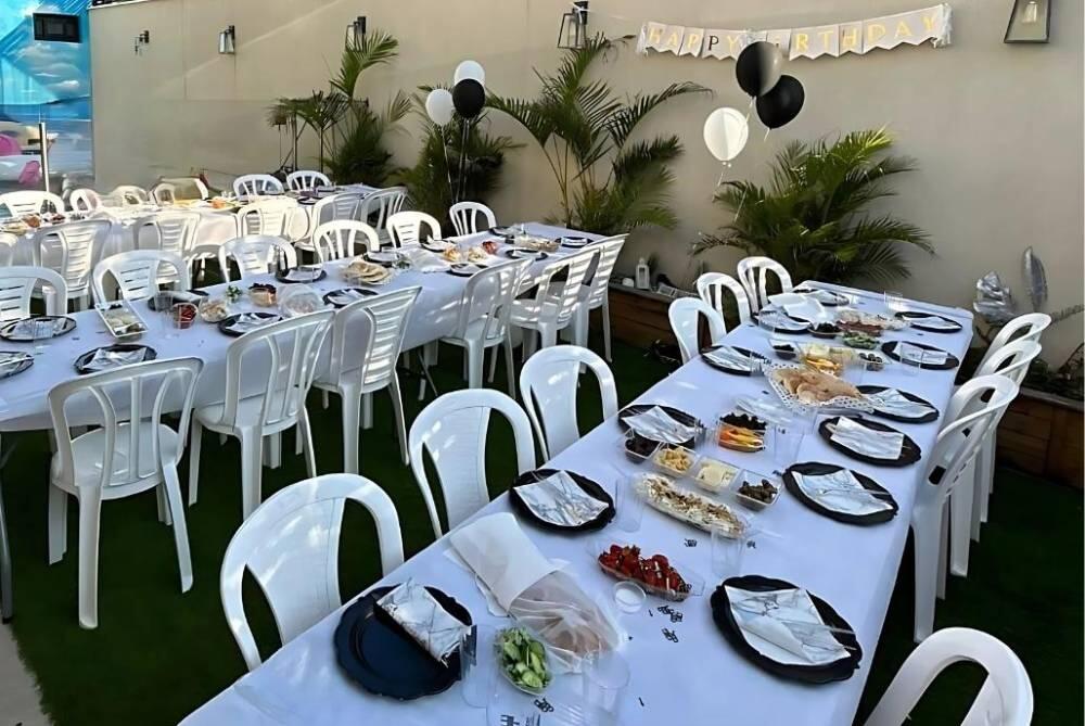 "החצר בטיילת" מציעה אירוח מושלם לקבוצות של עד 35 משתתפים, עם מגוון אלמנטים שהופכים כל אירוע לחוויה בלתי נשכחת. במרכז המתחם ניצבת בריכה מחוממת ומגודרת לבטיחות מרבית, מוקפת בפינות ישיבה מפנקות המזמינות להתרגעות והנאה. לחובבי האירוח והבישול, המקום מציע עמדת מנגל מאובזרת להכנת ארוחות טעימות. להשלמת החוויה, המתחם כולל גם חלל ממוזג לנוחות בכל עונות השנה. "החצר בטיילת" - המקום שבו החלום על אירוע ליד הים פוגש מציאות מושלמת.