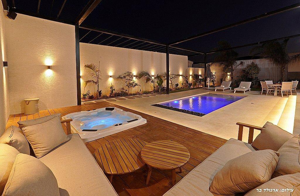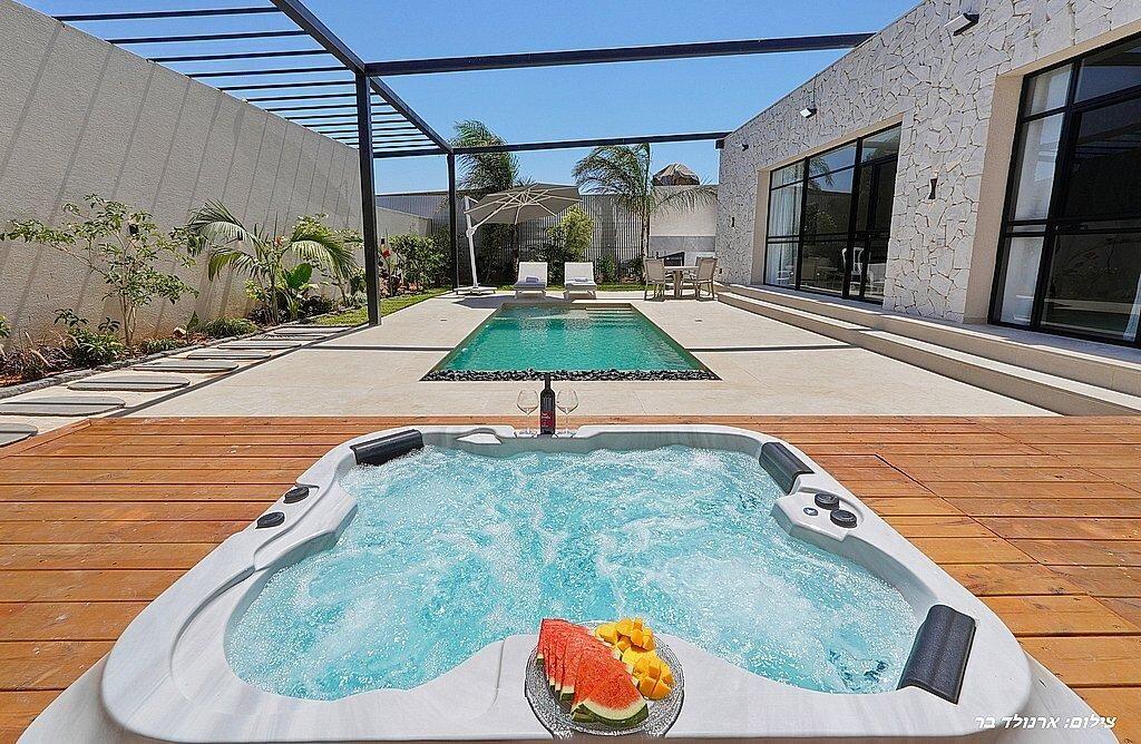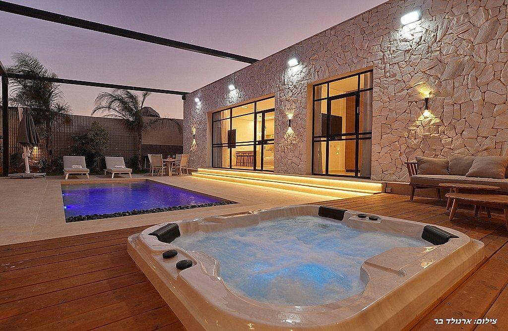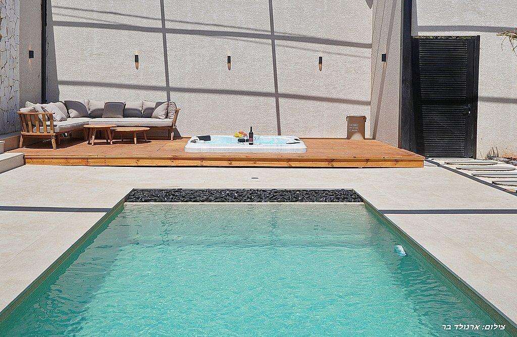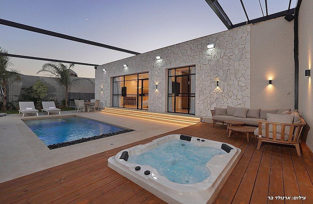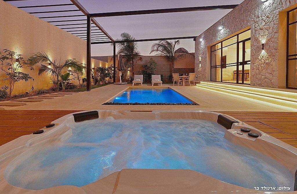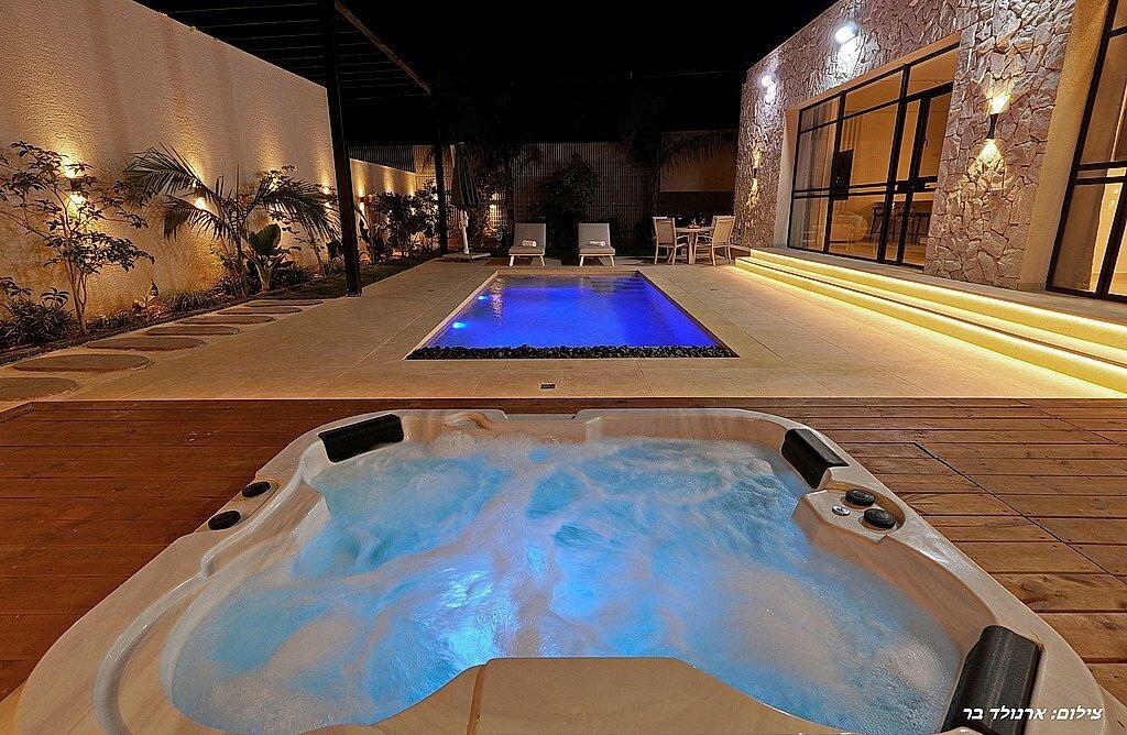 כוללת בריכה פרטית מחוממת (6.5×3 מ') עם גג נפתח, ג'קוזי ספא, מדשאה מטופחת ופינות ישיבה נעימות.