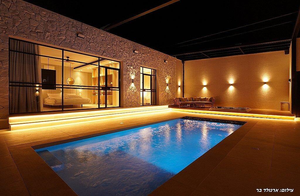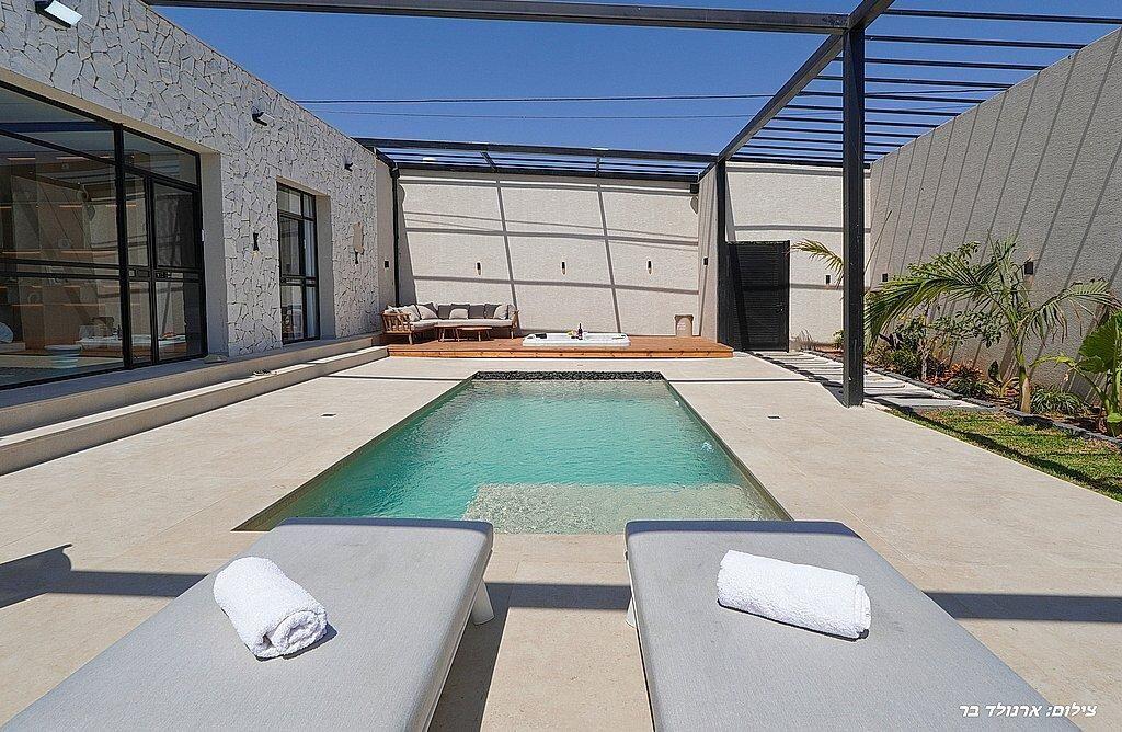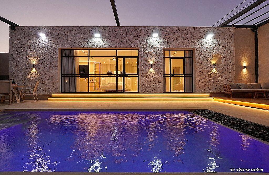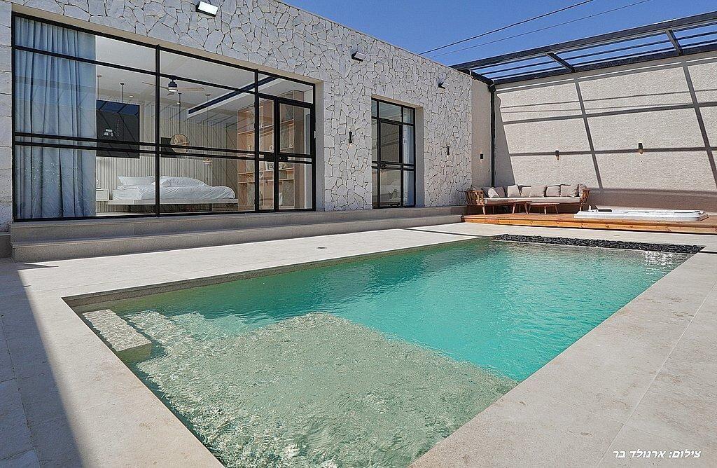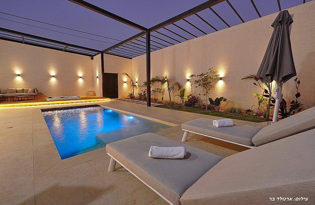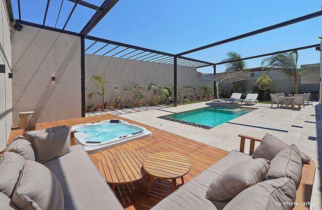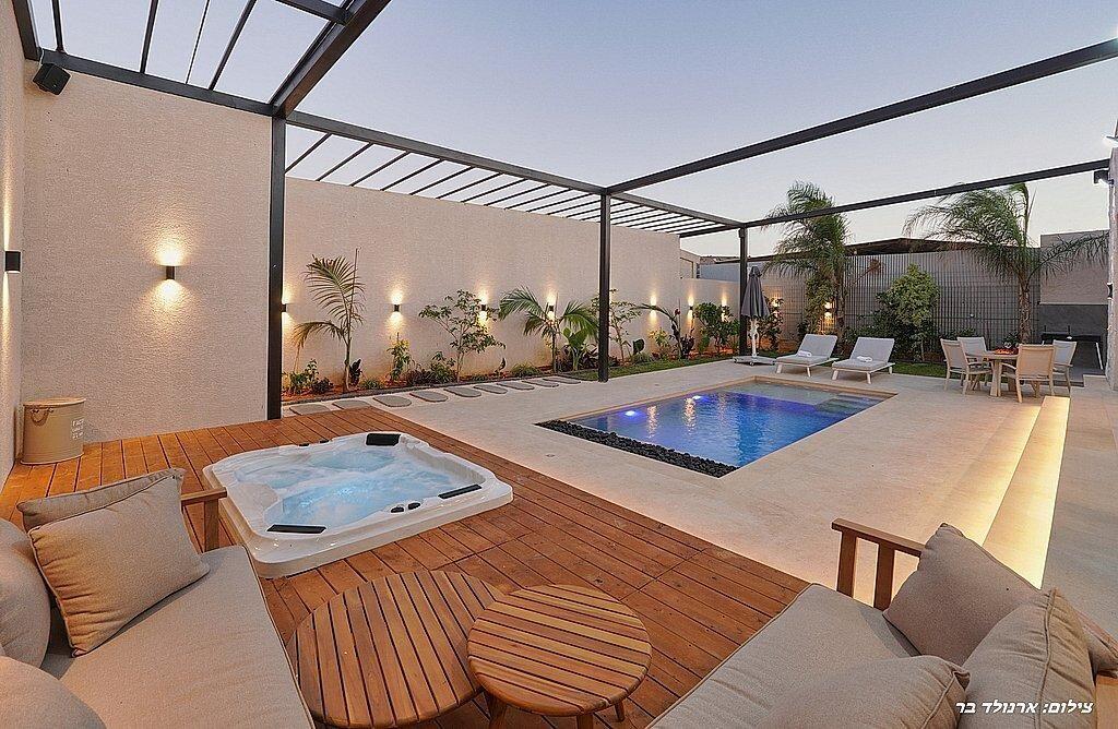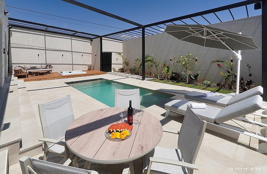 כוללת בריכה פרטית מחוממת (6.5×3 מ') עם גג נפתח, ג'קוזי ספא, מדשאה מטופחת ופינות ישיבה נעימות.
