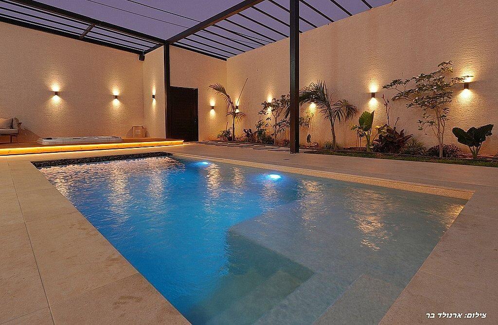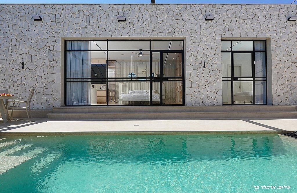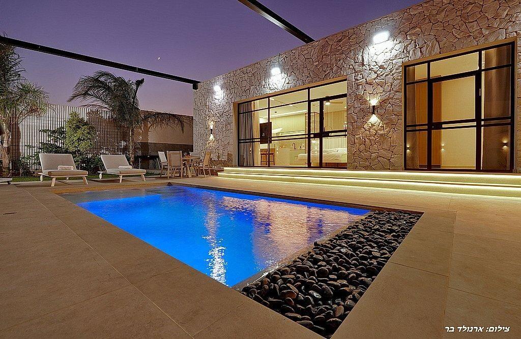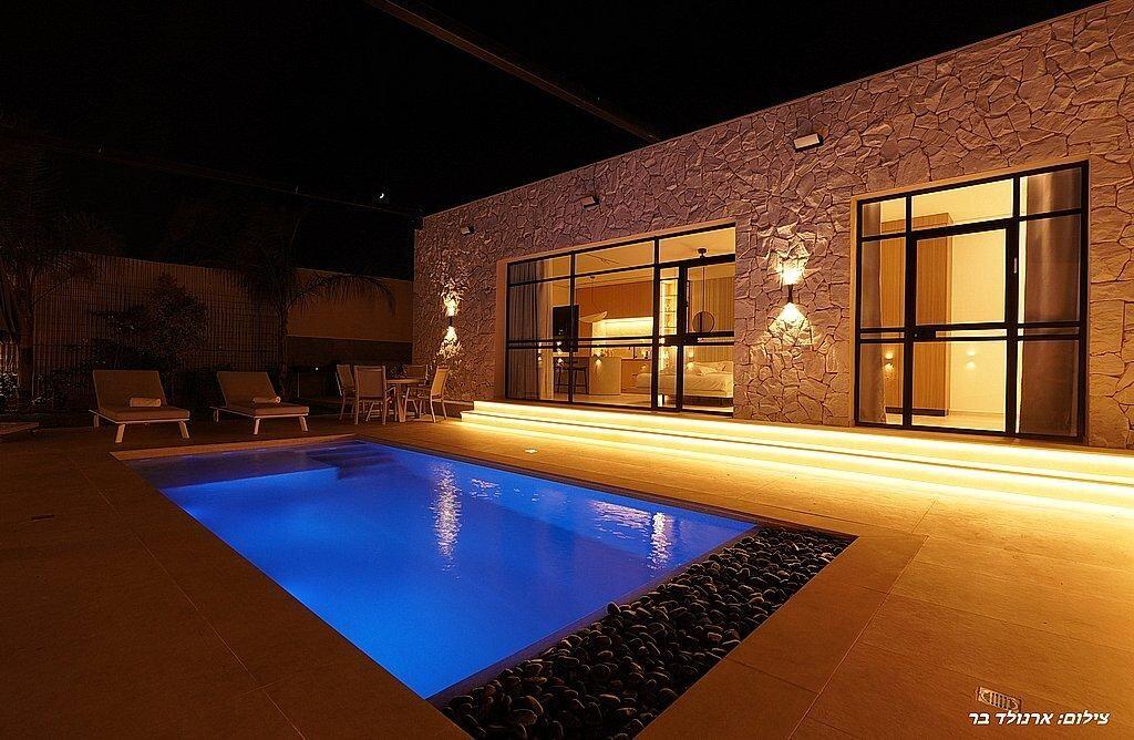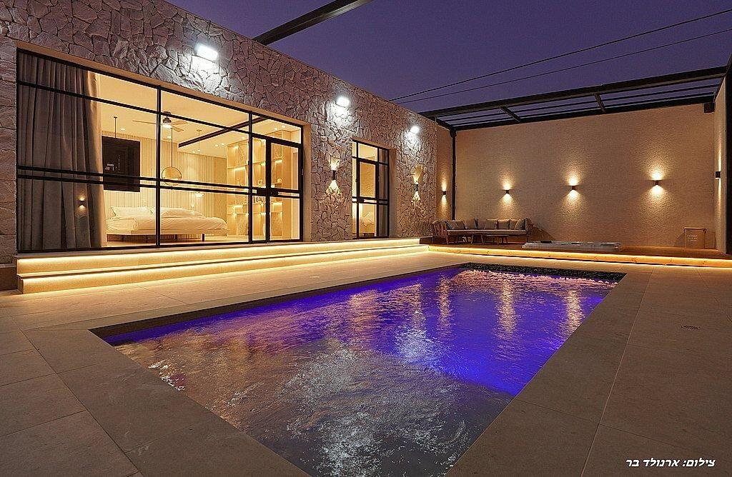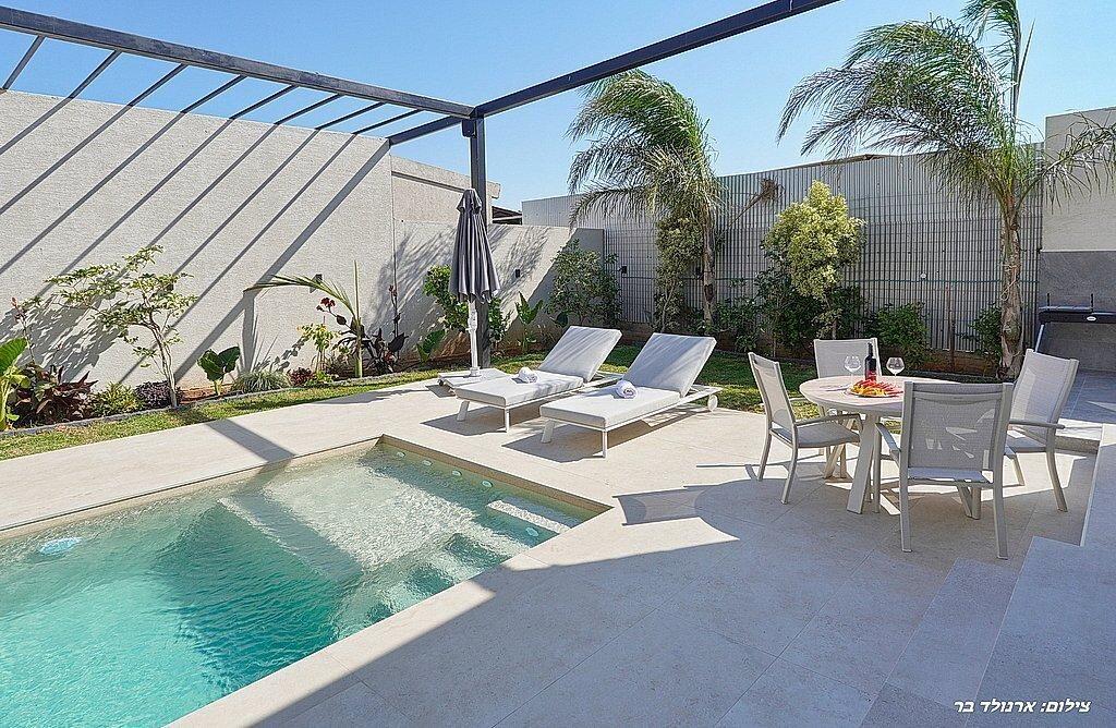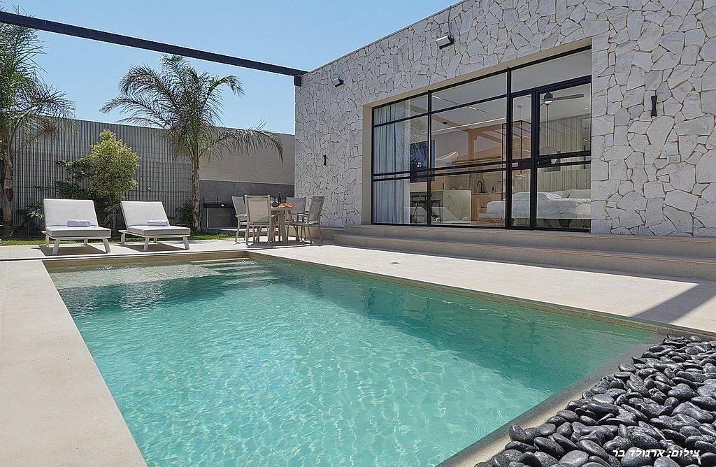 כוללת בריכה פרטית מחוממת (6.5×3 מ') עם גג נפתח, ג'קוזי ספא, מדשאה מטופחת ופינות ישיבה נעימות.