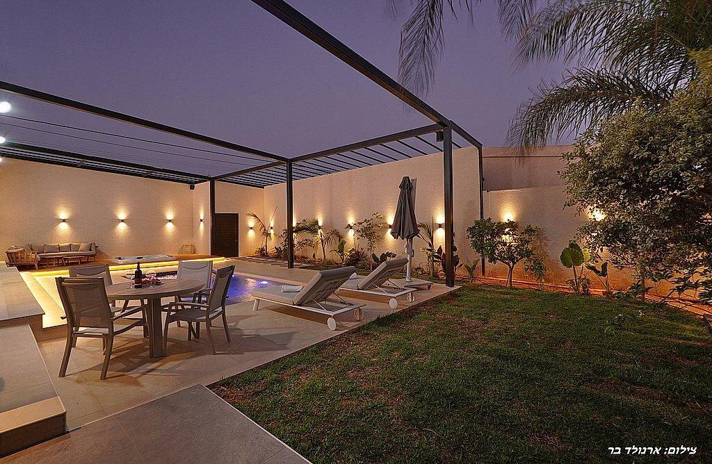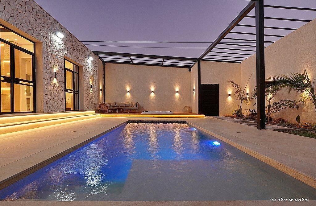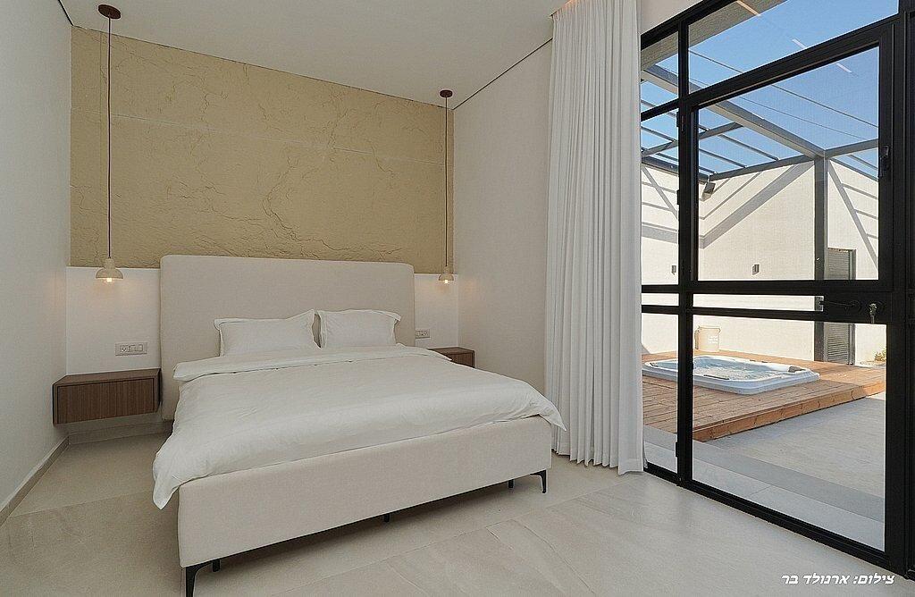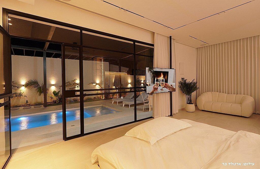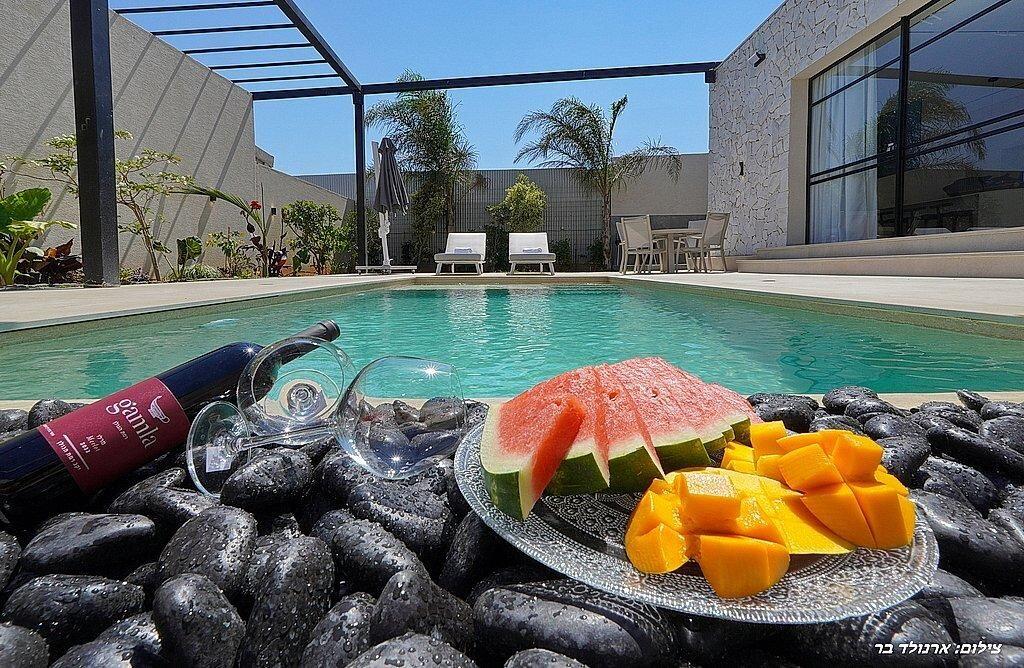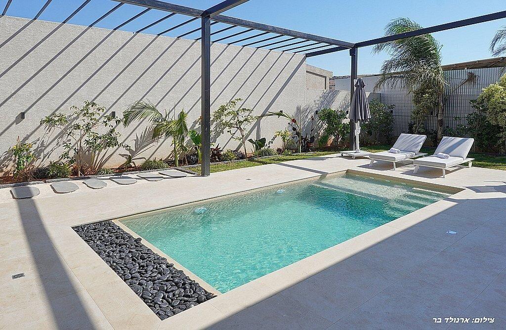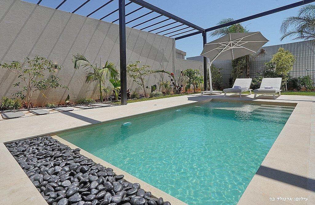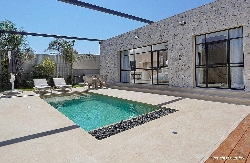 כוללת בריכה פרטית מחוממת (6.5×3 מ') עם גג נפתח, ג'קוזי ספא, מדשאה מטופחת ופינות ישיבה נעימות.