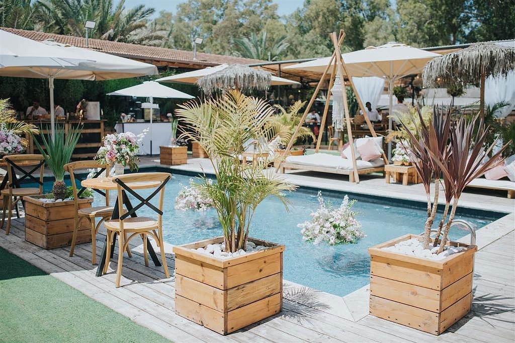המתחם בנוי משילוב של גן תחת כיפת השמיים וחלל בנוי. הבוסתן מוקף בטבע יפיפה, שטח דשא רחב ידיים ומציע בריכה צלולה (מחוממת בעונה) ושלל מתקנים לשדרוג האירוע.