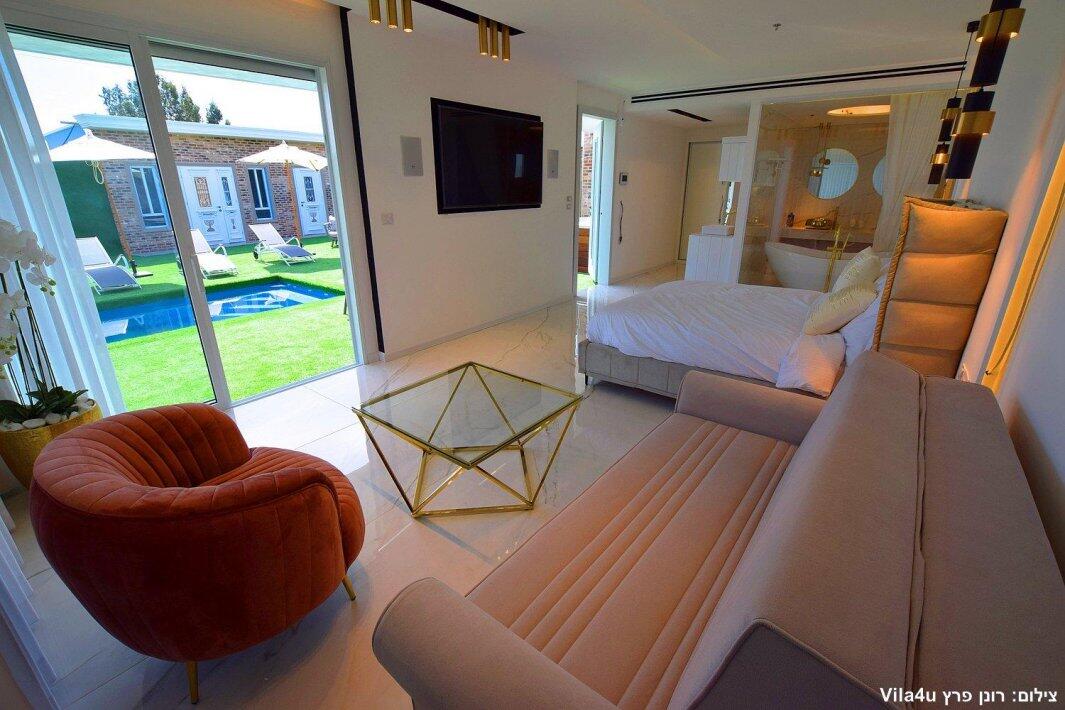 הוילה מותאמת לנופש משפחתי ולמסיבות. במתחם תהנו מסוויטה מפנקת עם מיטה זוגית וספה נפתחת עם חדר רחצה פרטי. במתחם החיצוני בריכת שחייה פרטית, ג'קוזי ספא, סאונה, מערכת הגברה מקצועית, פינת מנגל עם מטבח חיצוני ועוד שלל הפתעות ופינוקים..