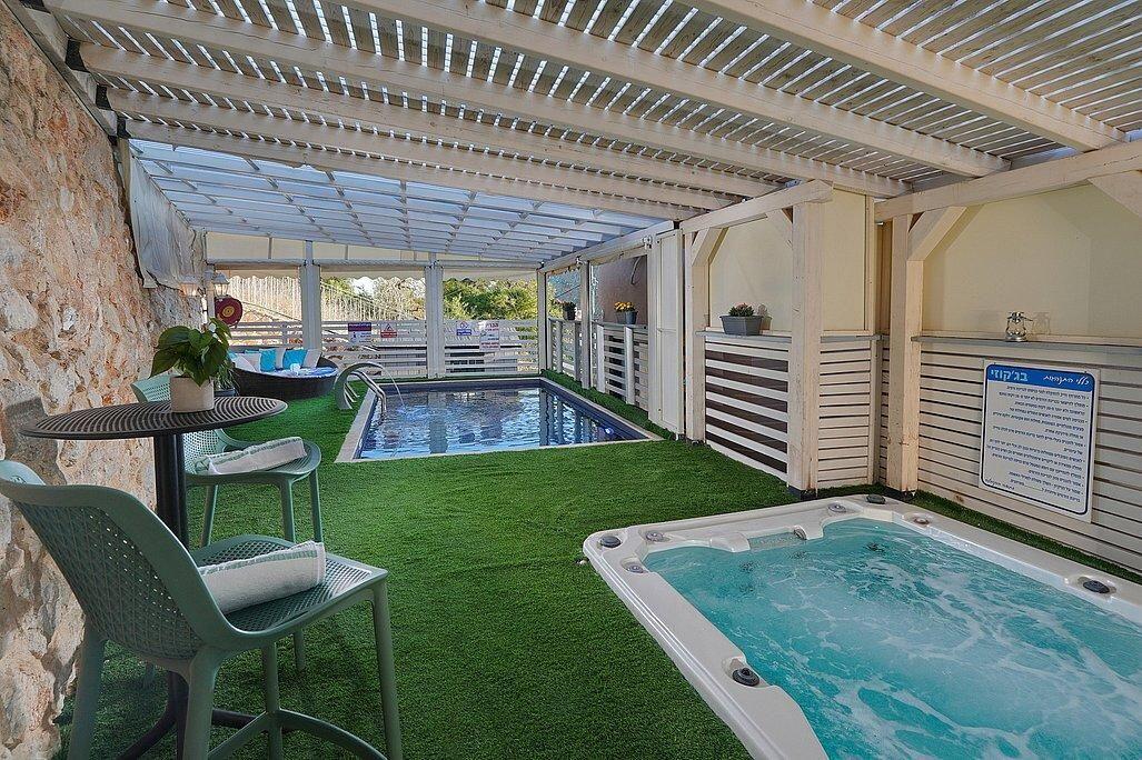 מתחם נופש ברמת אבזור גבוהה, מעוצב בסגנון פרובנס ומונה 2 סוויטות מפנקות מתאימות לנופש משפחות וזוגות, חצר מטופחת ומפנקת עם בריכת שחייה ובריכת זרמים, ג'קוזי ספא יוקרתי, משחקי שולחן ועוד...